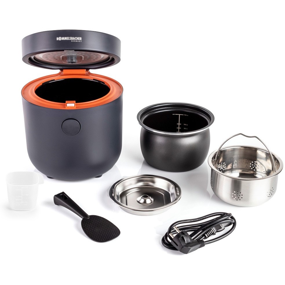 Mit dem kompakten Multi Reiskocher Risa ist es so einfach wie nie zuvor, alle gängigen Reissorten energiesparend und bequem zuzubereiten. Ob Basmati, Jasmin, Sadri oder Vollkornreis – alles gelingt perfekt. Der Multi Reiskocher ist extrem vielseitig, denn auch zum Zubereiten von Milchreis und Risotto, zum Dämpfen von Gemüse und zum Erwärmen von Lebensmitteln ist er perfekt geeignet. Das große Highlight dieses Modells ist die innovative Low Carb Funktion, bei welcher der Kohlenhydratanteil des Reises durch ein spezielles mehrstufiges Garverfahren um bis zu einem Drittel reduziert wird. Damit trifft Risa die aktuellen Ernährungstrends im Bereich bewusster und kohlenhydratarmer Ernährung. Auch optisch weiß Risa zu überzeugen: Das attraktive Cool-Touch Gehäuse im Matt-Look samt Hochglanz Sensor-Touch Bedienfeld ist ein Blickfang. Das große LED-Display und die beleuchteten Programmanzeigen sorgen stets für Überblick. Doch auch die inneren Werte bestechen, nämlich durch eine integrierte Heizplatte und eine elektronische Temperaturüberwachung mit gleich zwei Temperatursensoren. 3 vollautomatische Reis-Programme und 3 Programme mit manueller Gardauer-Einstellung erlauben die komfortable Reis-Zubereitung, aber auch die Anpassung an ganz individuelle Geschmacksvorlieben beim Milchreis. Hochwertige Materialien, durchdachte Technik und ein vielseitiges Zubehör machen aus diesem Reiskocher einen wertvollen Helfer in großen und kleinen Küchen.