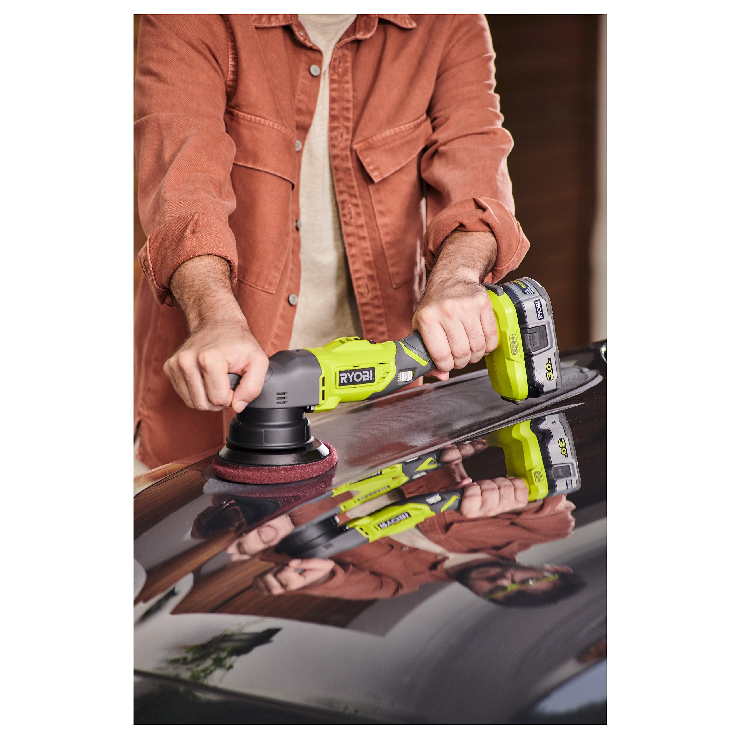 Ryobi R18P-0. Typ: Rotierende Autopoliermaschine, Leerlaufdrehzahl (max.): 7500 RPM, Durchmesser Polierpad: 12,5 cm. Energiequelle: Akku. Gewicht: 1,8 kg