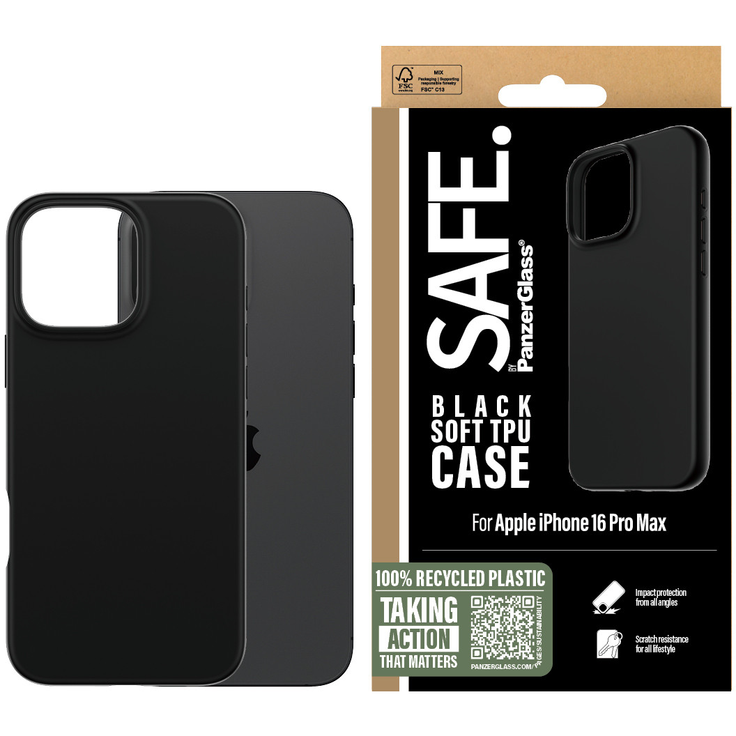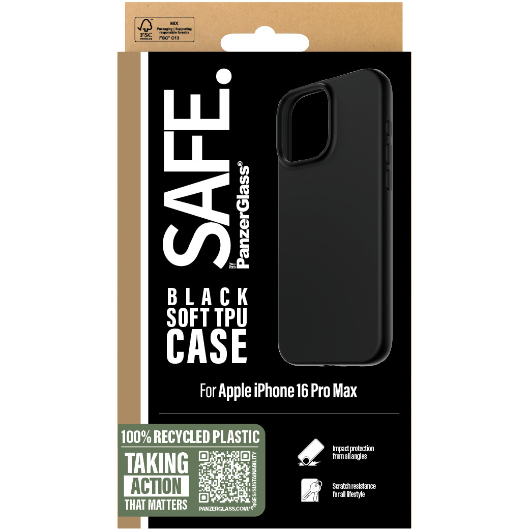 Mit der Soft TPU Hülle von SAFE. by PanzerGlass® kannst du dein Handy vor Stürzen in der Tasche, Stößen auf dem Rücksitz und verrückten Stürzen am Freitagabend schützen. Die dünne, schlanke und schwarze Hülle besteht zu 100 % aus recyceltem Plastik und schützt dein Handy effektiv, während du vollen Zugriff auf alle Funktionen hast. Sie ist kabellos aufladbar und vergilbt nicht, so dass deine Hülle auch bei Sonneneinstrahlung und Strandpartys Tag für Tag gut aussehen wird. Die weiche TPU-Hülle schützt und verlängert die Lebensdauer deines Handys, damit du es eines Tages an eine andere Person weitergeben kannst, die es genauso lieben wird wie du. Dies ist eine Möglichkeit, auf eine nachhaltigere Zukunft hinzuarbeiten. Eine andere ist die Verwendung nachhaltigerer Verpackungen. Deshalb wird dieses Produkt in einer recycelbaren, FSC®-zertifizierten Verpackung geliefert. Die Installation ist einfach. Du brauchst nur auf die Hülle zu klicken und kannst aufatmen, weil du weißt, dass du nie wieder den schrecklichen Anblick fürchten musst, dass dein Handy zu Boden fällt. Das wird vielleicht nicht passieren, aber wenn doch, wirst du es bereuen, nicht auf "In den Warenkorb" geklickt zu haben. Und denk daran: Wenn du dein Handy besonders gut schützen willst, kannst du die Hülle mit einem Displayschutz und einem Kameraschutz von SAFE. by PanzerGlass® kombinieren. Keep your phone SAFE.