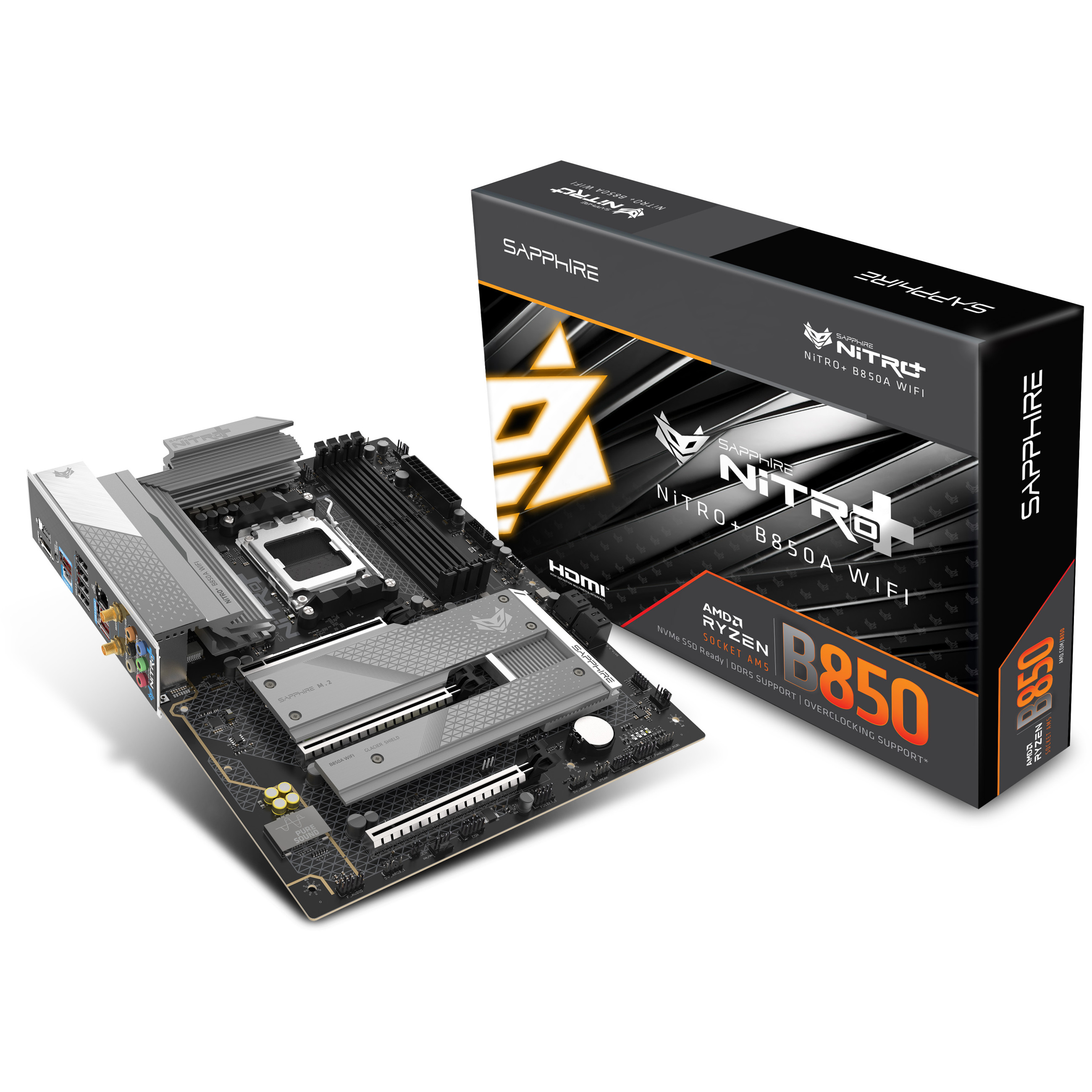 Sapphire NITRO+ B850A WIFI 7. Prozessorhersteller: AMD, Prozessorsockel: Sockel AM5, Kompatible Prozessoren: AMD Ryzen 7000 Series, AMD Ryzen 8000 Series, AMD Ryzen 9000 Series. Unterstützte Arbeitsspeicher: DDR5-SDRAM, RAM-Speicher maximal: 256 GB, Arbeitsspeicher Typ: DIMM. Unterstützte Speicherlaufwerk-Schnittstellen: PCI Express 4.0, PCI Express 5.0, SATA III, Unterstützte Speicherlaufwerke: HDD & SSD. Ethernet Schnittstellen Typ: 2.5 Gigabit Ethernet, LAN-Controller: Dragon RTL8125BG, Top WLAN-Standard: Wi-Fi 7 (802.11be). Komponente für: PC, Motherboardformfaktor: micro ATX, Motherboard Chipsatz Familie: AMD