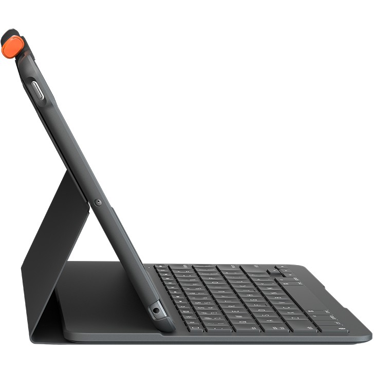Logitech Slim Folio. Tastaturaufbau: QWERTY, Tastatursprache: Italienisch, Tastenabstand: 1,7 cm. Markenkompatibilität: Apple, Kompatibilität: iPad (7th gen), Produktfarbe: Graphit. Übertragungstechnik: Kabellos, Geräteschnittstelle: Bluetooth. Energiequelle: Akku, Akku-/Batterietechnologie: Lithium-Ion (Li-Ion), Akku-/Batteriekapazität: 220 mAh. Unterstützte mobile Betriebssysteme: iOS