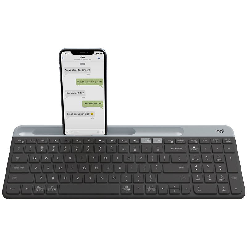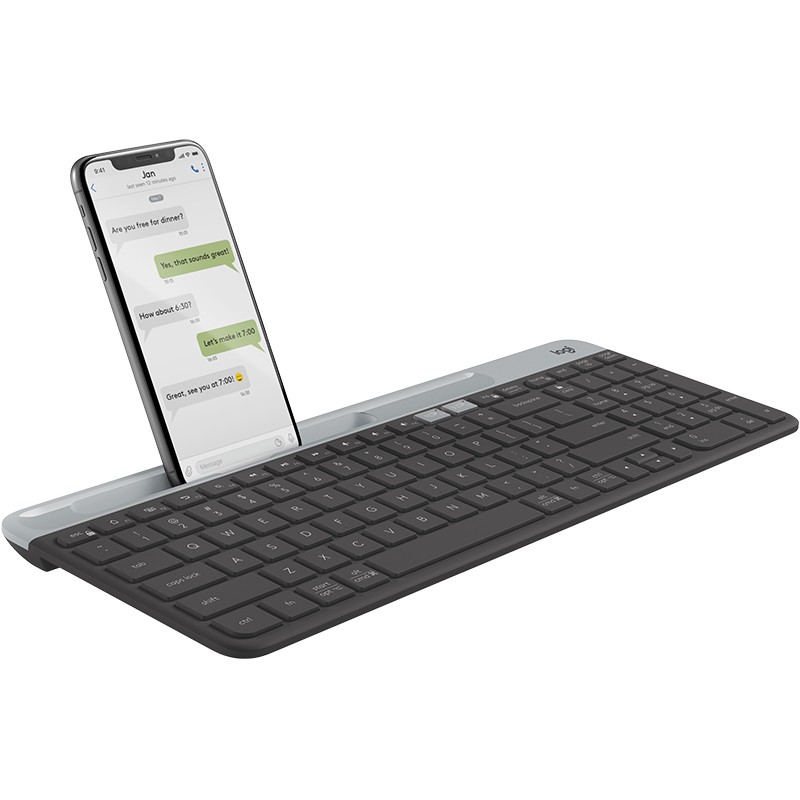 Logitech Slim Multi-Device Keyboard K580. Tastatur Formfaktor: Volle Größe (100%). Tastatur-Stil: Gerade. Übertragungstechnik: Kabellos, Geräteschnittstelle: RF Wireless + Bluetooth, Tastaturaufbau: QWERTY, Empfohlene Nutzung: Universal. Produktfarbe: Graphit