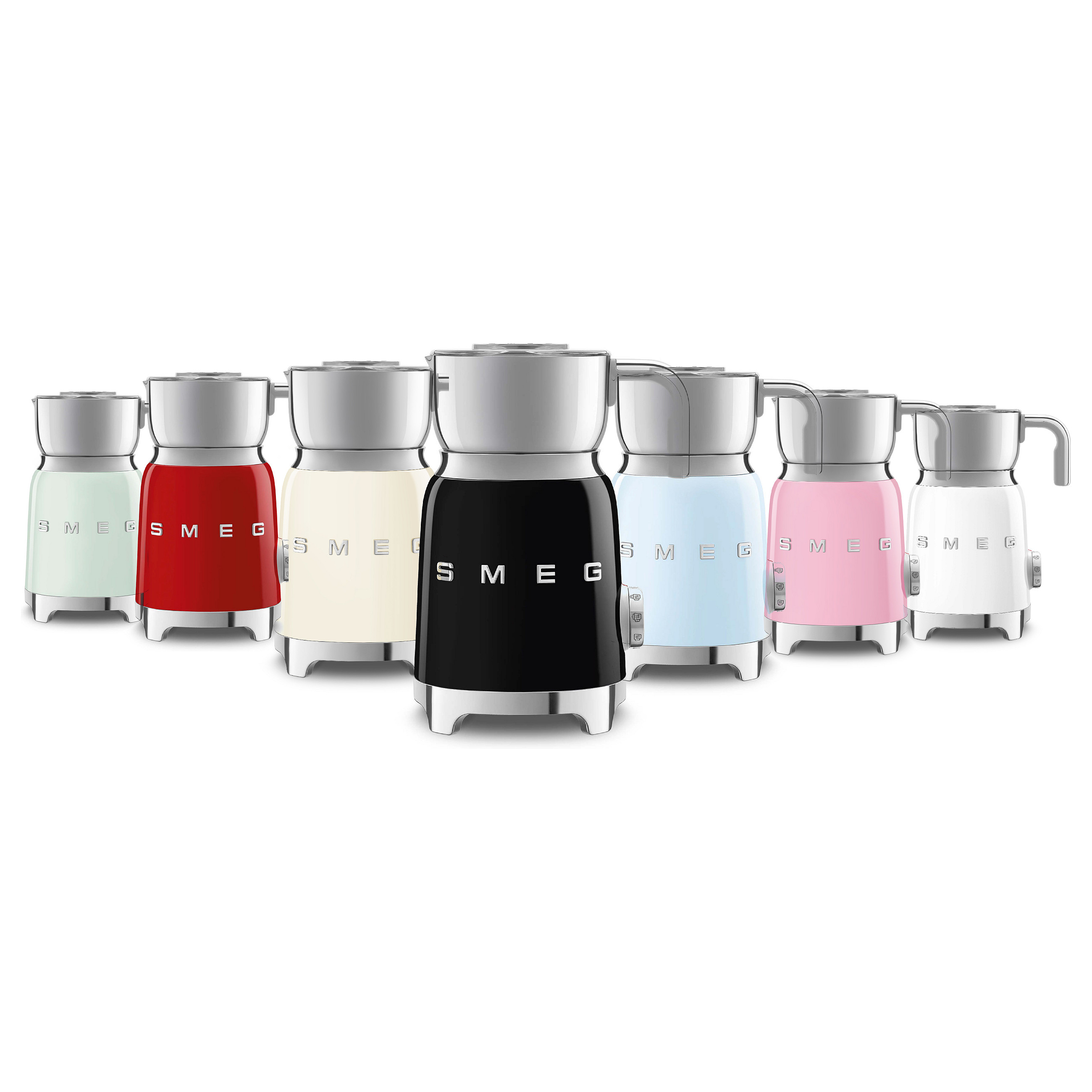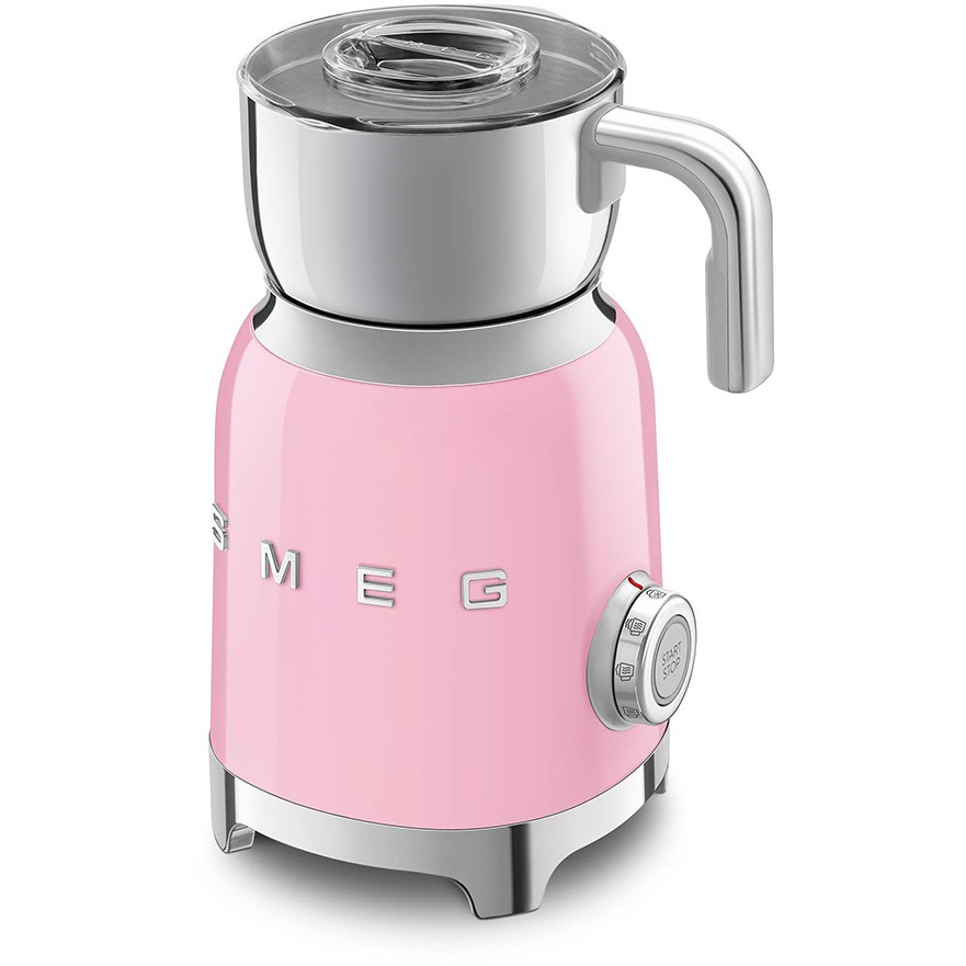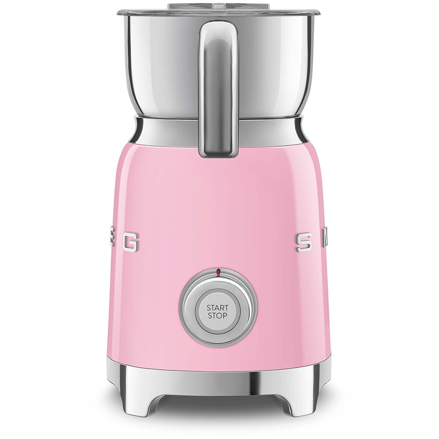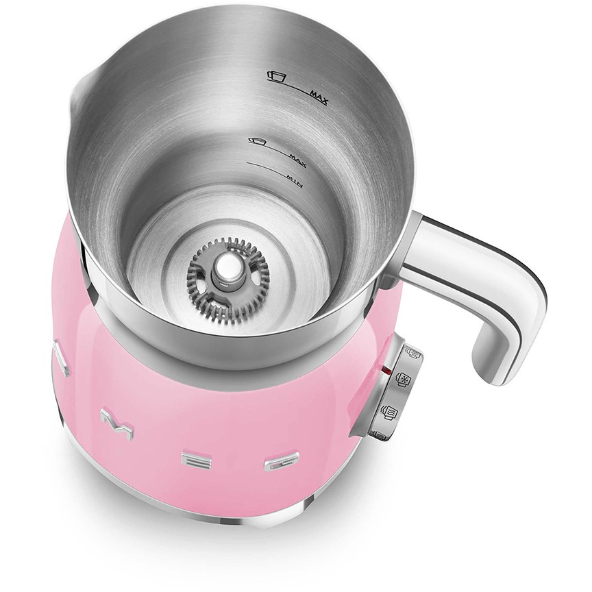 Smeg MFF11PKEU. Typ: Automatischer Milchaufschäumer/-wärmer, Produktfarbe: Rose, Schüsselmaterial: Edelstahl. Energiequelle: AC, Leistung: 500 W, AC Eingangsfrequenz: 50 - 60 Hz. Breite: 184 mm, Tiefe: 142 mm, Höhe: 251 mm. Verpackungsbreite: 233 mm, Verpackungstiefe: 233 mm, Verpackungshöhe: 337 mm