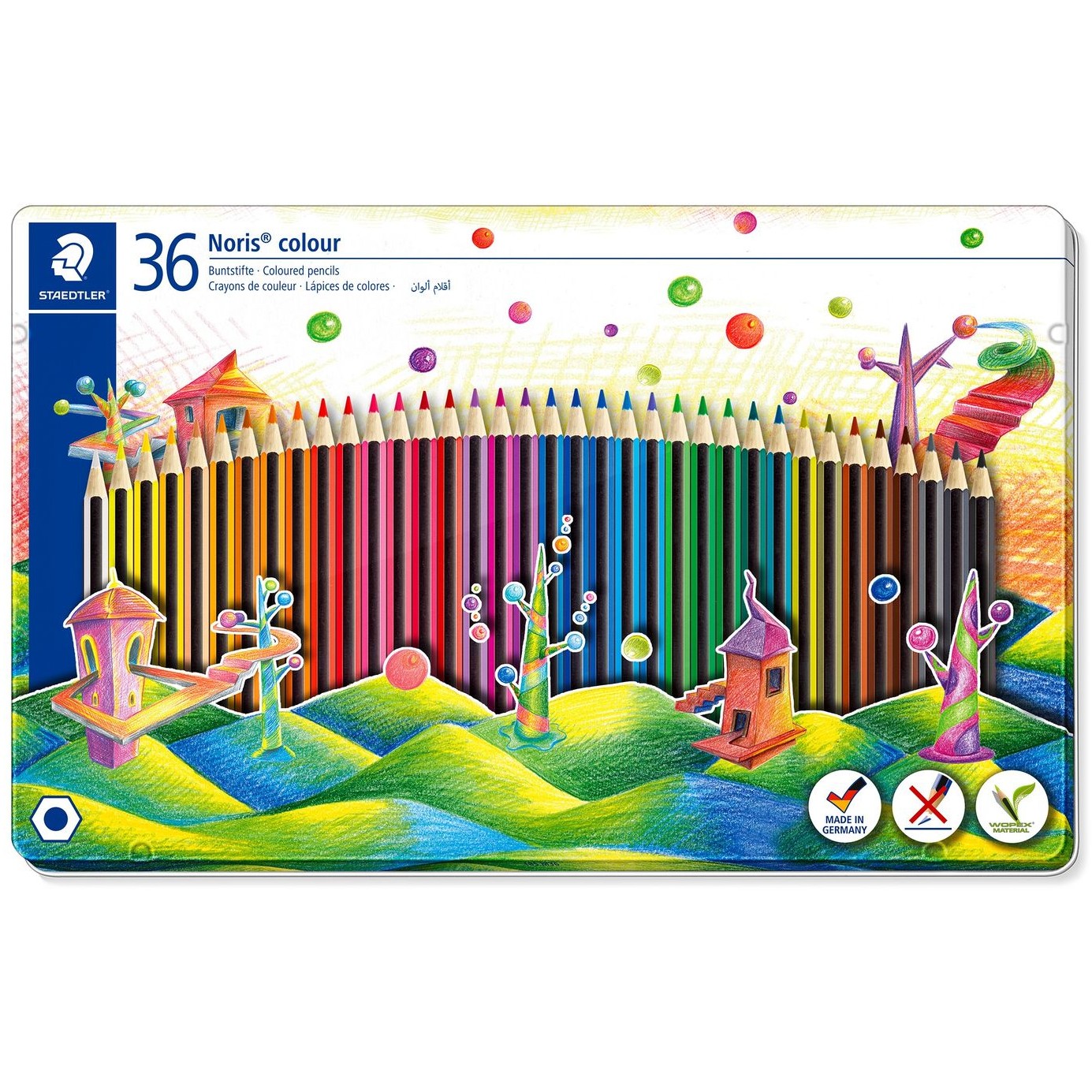 Staedtler 185 M36. Menge pro Packung: 36 Stück(e), Schreibfarben: Mehrfarbig, Empfohlenes Alter in Jahren (mind.): 3 Jahr(e). Verpackungsart: Box. Ursprungsland: Deutschland. Nachhaltigkeitszertifikate: PEFC