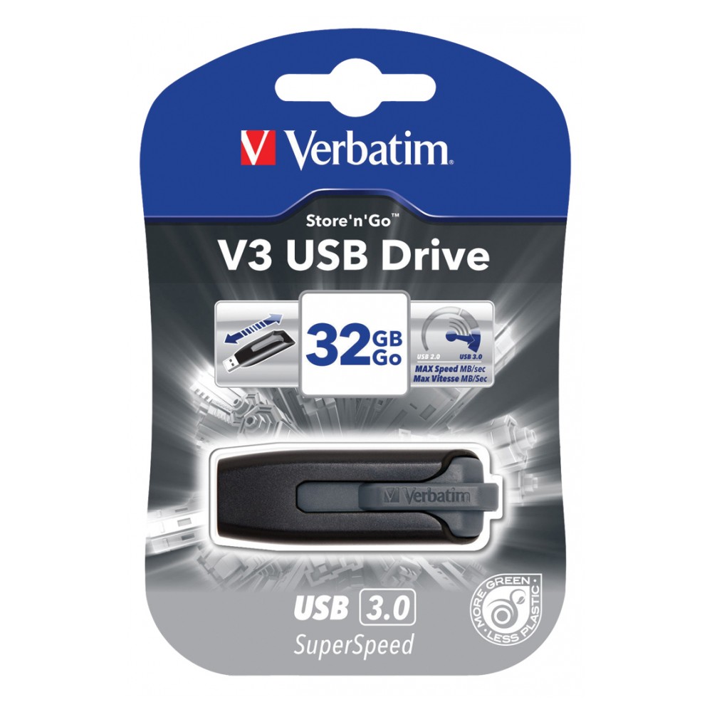 Die USB 3.0-Schnittstelle des Store 'n' Go V3 USB-Laufwerks für SuperSpeed-Datenübertragungen ist bis zu zehn Mal schneller als USB 2.0, so dass Sie große Dateien aller Arten sehr viel schneller übertragen und speichern können.