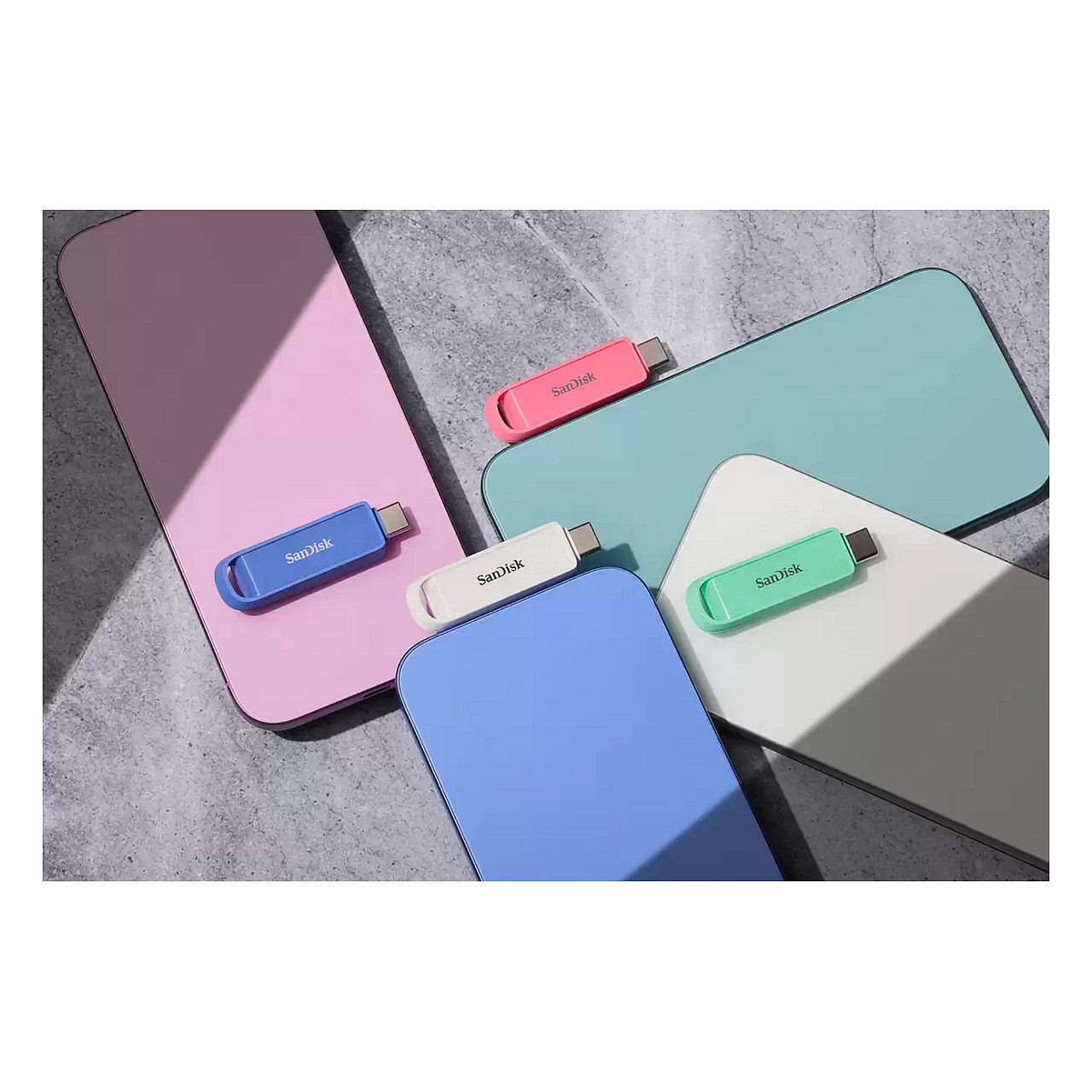 SanDisk Phone Drive. Kapazität: 256 GB, Geräteschnittstelle: USB Typ-C, USB-Version: 3.2 Gen 1 (3.1 Gen 1), Lesegeschwindigkeit: 150 MB/s. Formfaktor: Ohne Deckel. Gewicht: 5,38 g. Produktfarbe: Weiß