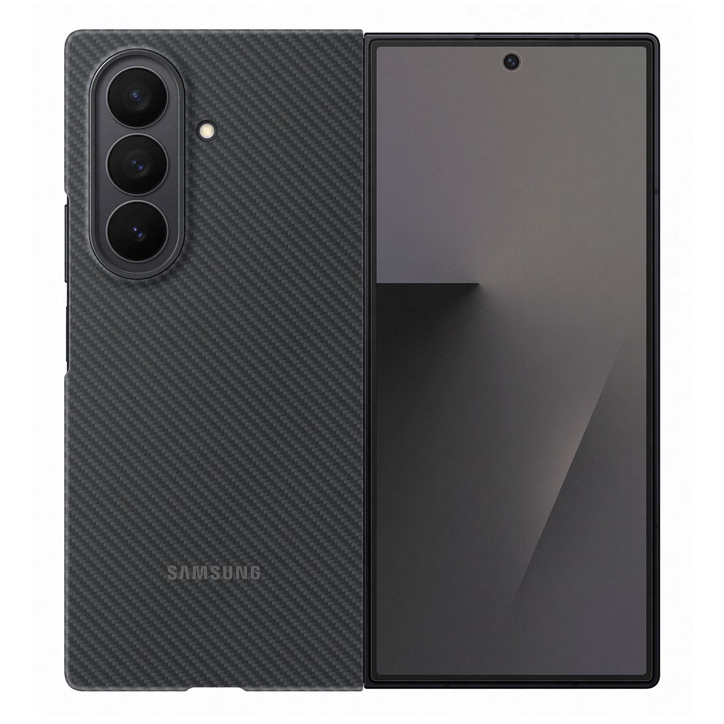 Das Carbon Shield Case für das Galaxy Z Fold7 besteht aus robustem Aramid – einem widerstandsfähigen Kohlefaser-Material, das vor Kratzern schützt und gut aussieht.