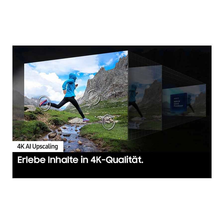 Der Neural Quantum 4K AI Gen2 Prozessor bietet dir ein großartiges Seherlebnis in 4K. Ermöglicht wird das durch unsere Technologie 4K AI Upscaling, die von 20 neuronalen AI-Netzwerken unterstützt wird. Sie rechnet deine Inhalte in eine Auflösung hoch, die nativem 4K sehr nahekommt. Der Neural Quantum 4K AI Gen2 Prozessor sorgt dafür, dass sowohl das Bild als auch der Sound optimiert wird. Das gilt für deine Lieblingsgames ebenso wie für Live-Sport und Streaming-Dienste.