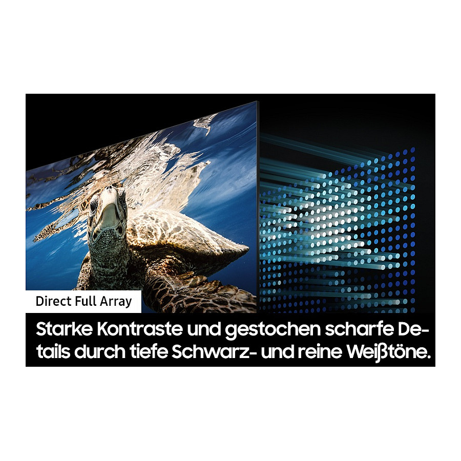 Dank Direct Full Array kommst du in den Genuss starker Kontraste und scharfer Details in dunklen Szenen. Die präzise und direkte LED-Hintergrundbeleuchtung kann Helligkeit und Dunkelheit in bestimmten Bereichen einer Szene anpassen, damit du noch mehr Details wahrnehmen kannst.