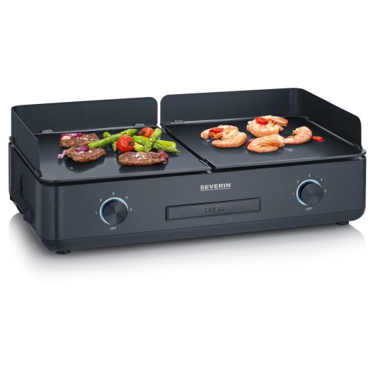 Severin PG 8569. Produktfarbe: Schwarz, Gehäusematerial: Aluminium, Kunststoff, Formfaktor: Rechteckig. Leistung: 2200 W. Breite: 515 mm, Tiefe: 295 mm, Höhe: 175 mm. Verpackungsbreite: 565 mm, Verpackungstiefe: 190 mm, Verpackungshöhe: 325 mm. Enthält nicht: PFAS