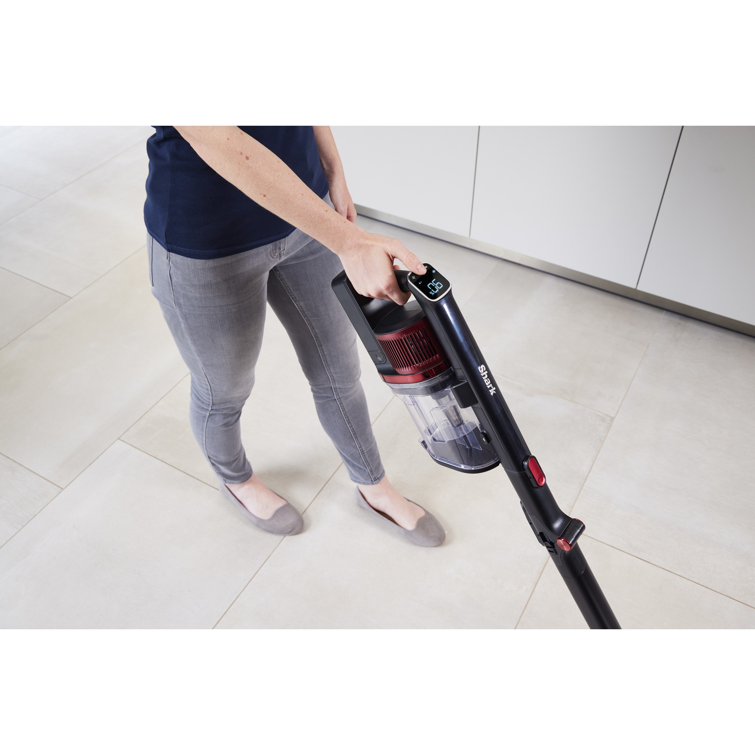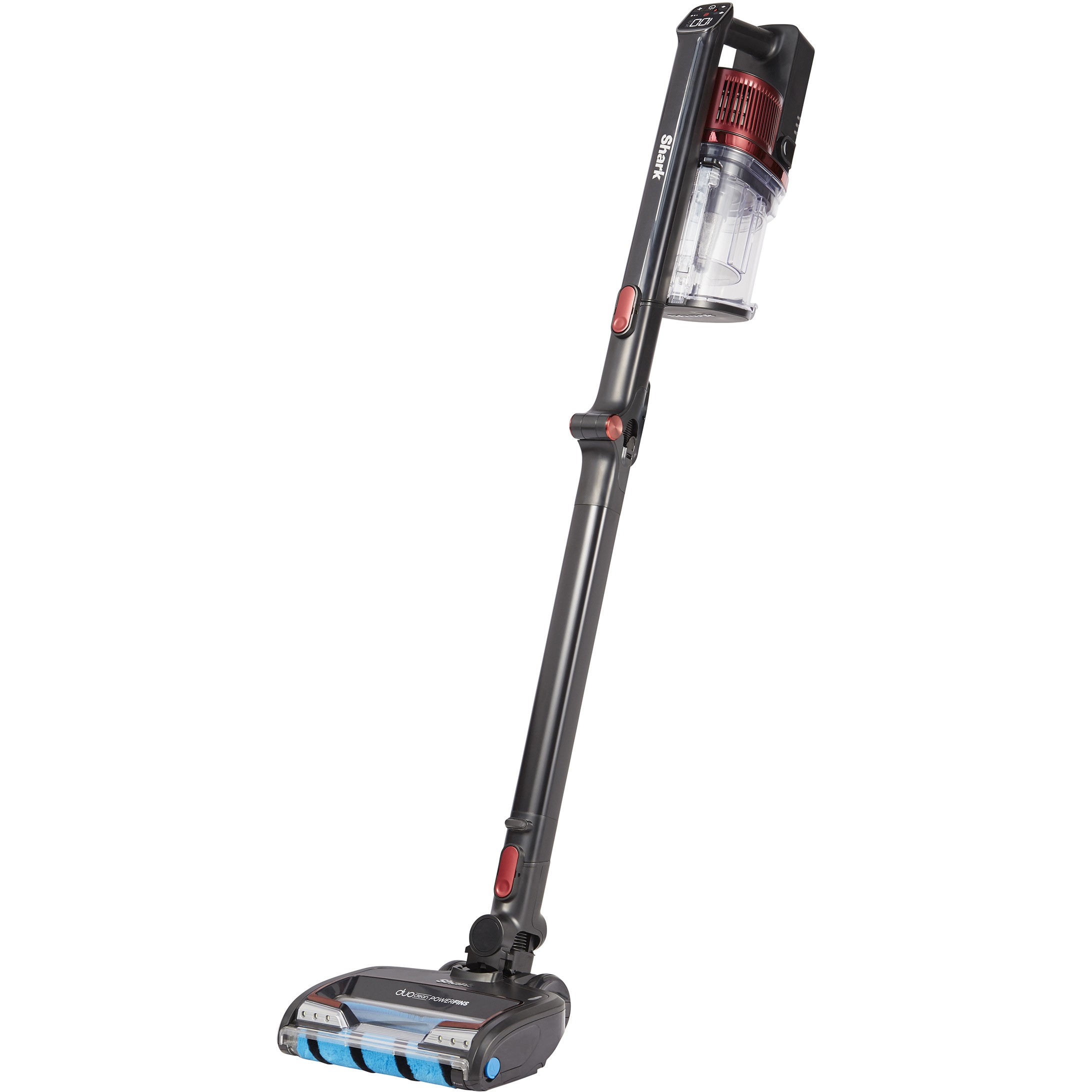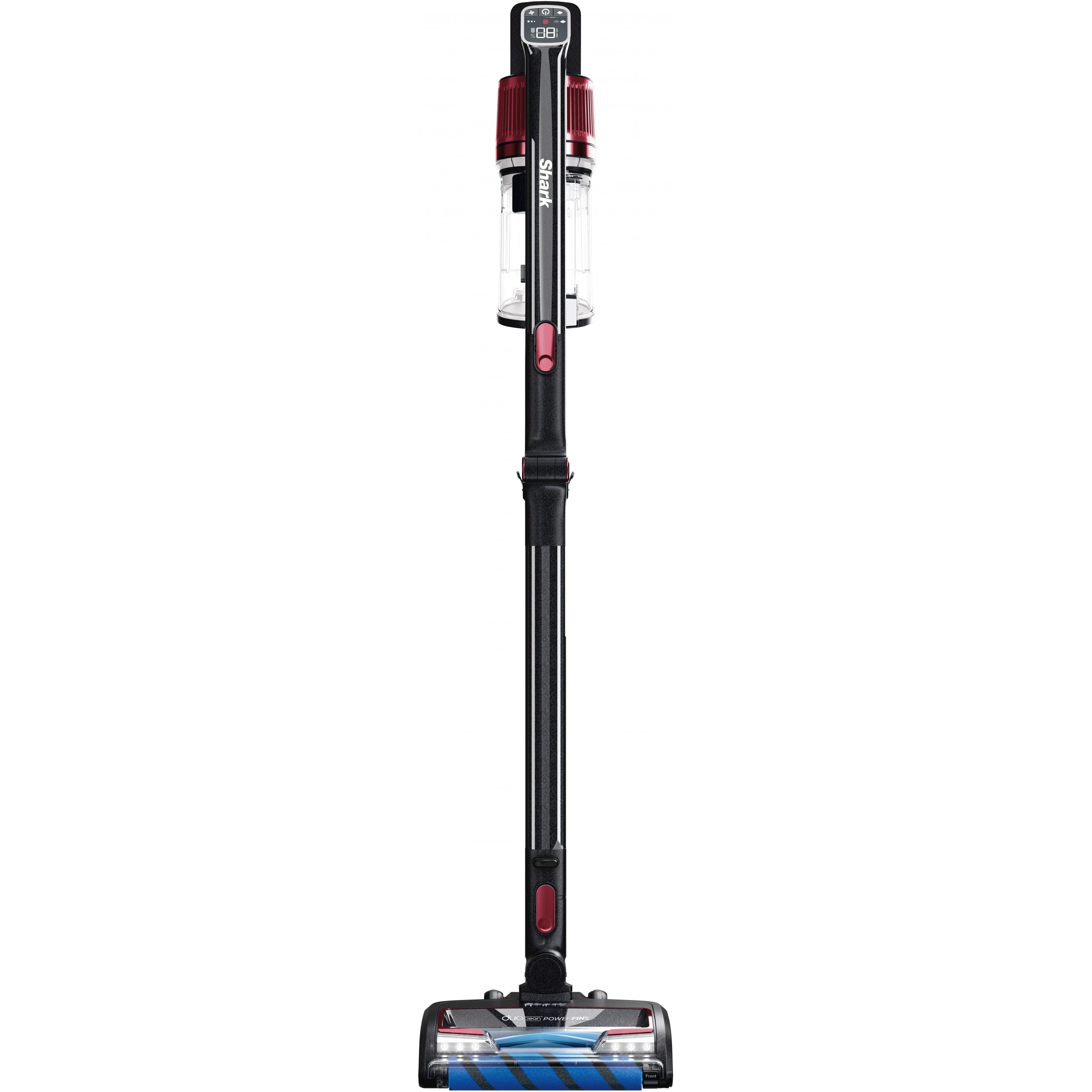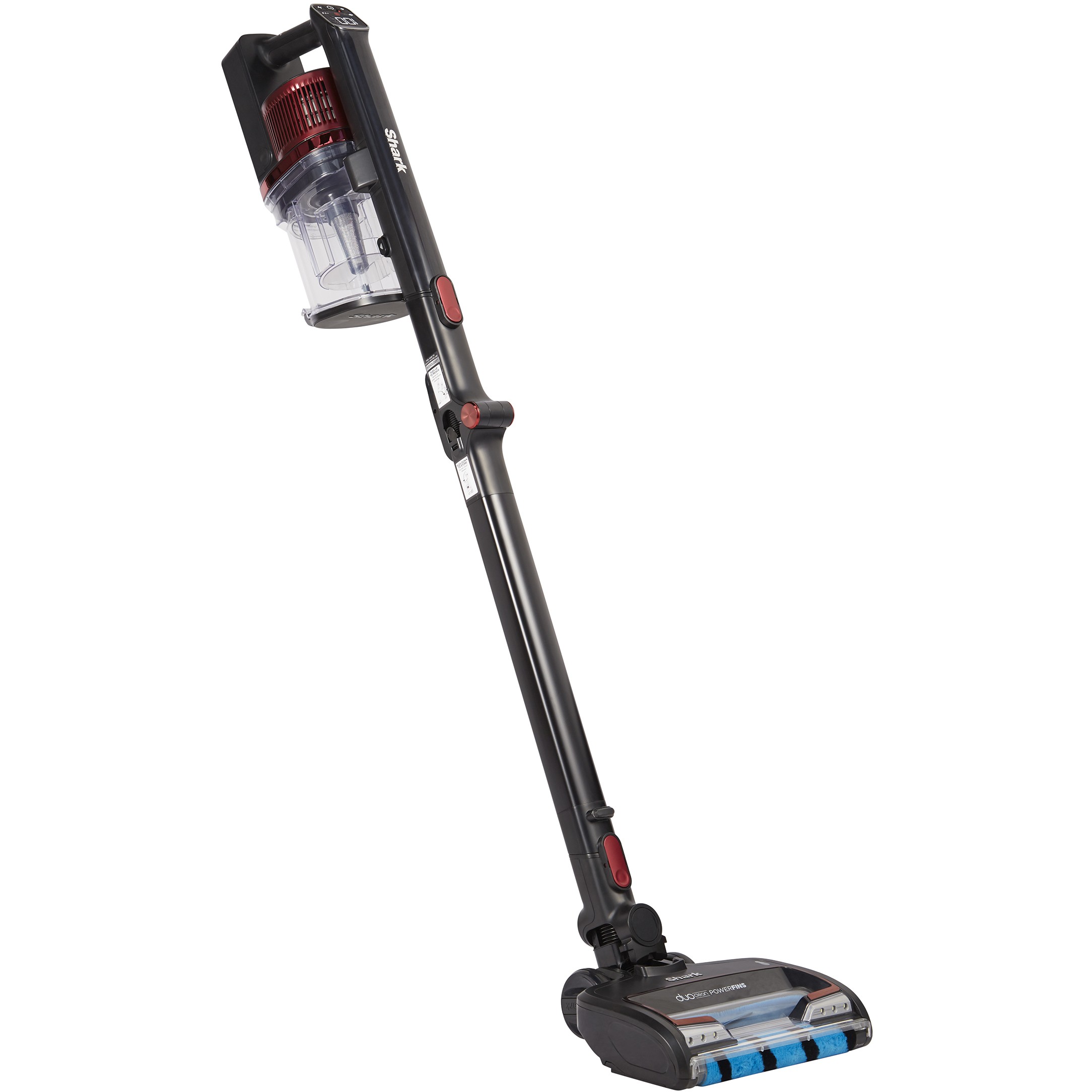 Shark IZ300EUT. Produkttyp: 2-in-1-Stabstaubsauger, Staubbehälter Typ: Beutellos, Produktfarbe: Schwarz, Burgund. Reinigungsart: Trocken, Schmutztrennungsmethode: Zyklonal. Energiequelle: Akku, Akku-/Batteriespannung: 25,2 V, Laufzeit: 60 min. Gewicht: 1,74 kg. Staubsaugerbürsten enthalten: Mini-Turbobürste