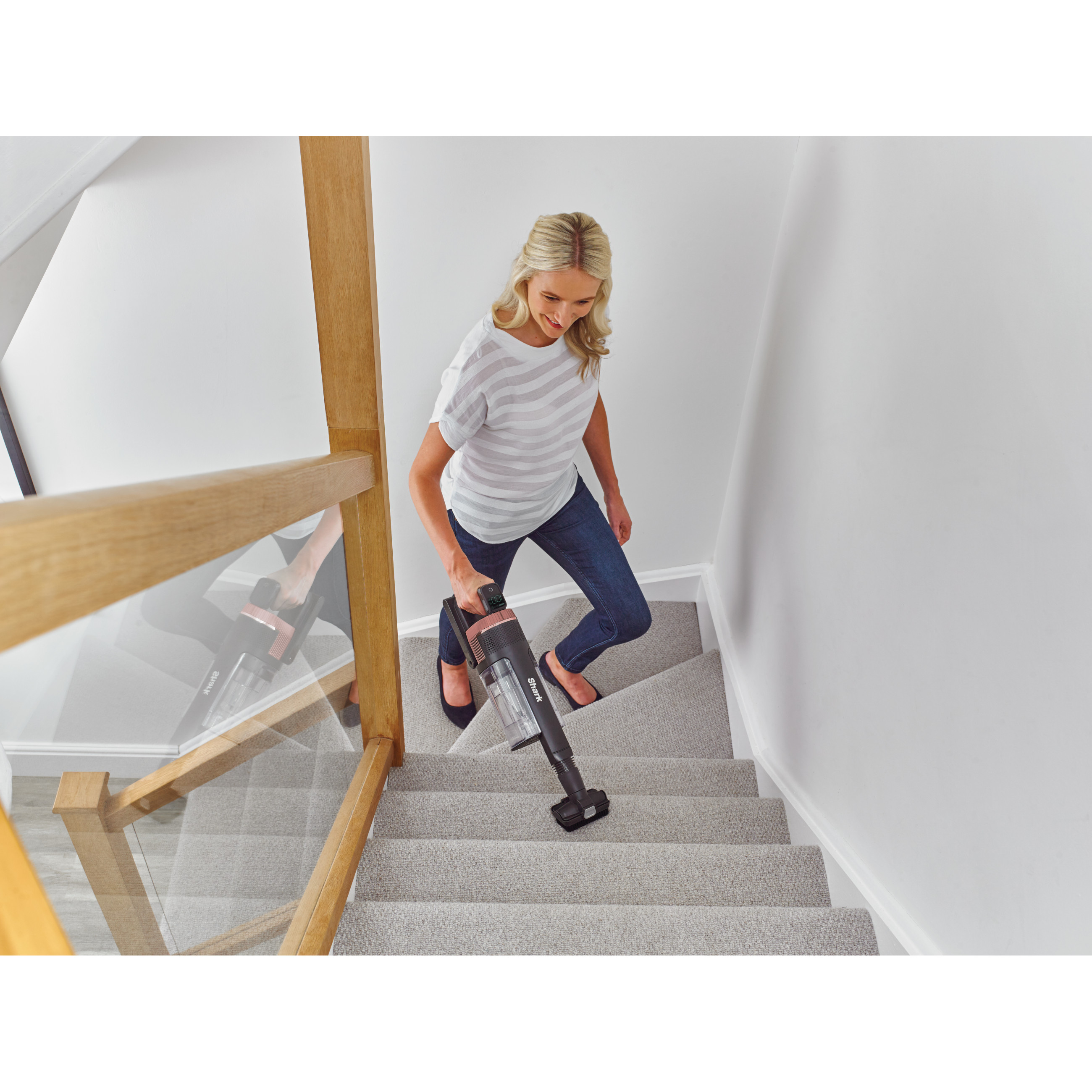 Shark Stratos. Produkttyp: 2-in-1-Stabstaubsauger, Staubbehälter Typ: Beutellos, Produktfarbe: Schwarz, Pfirsich. Reinigungsart: Trocken. Energiequelle: Akku, Laufzeit: 60 min. Staubsaugerbürsten enthalten: Motorbetriebene Bürsten