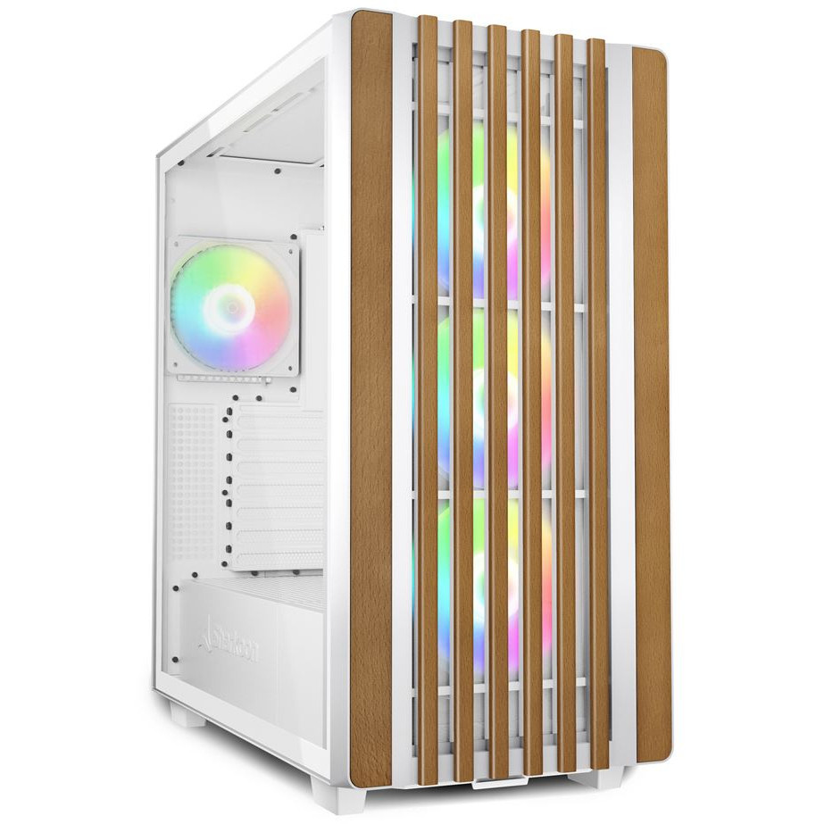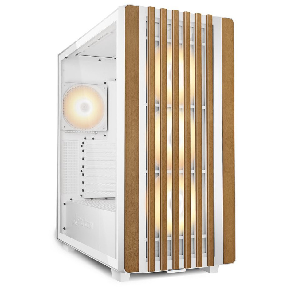 Sharkoon REBEL C70G RGB. Formfaktor: Full Tower, Typ: PC, Produktfarbe: Weiß, Holz. Installierte Lüfter (Vorderseite): 3x 120 mm, Durchmesser unterstützte Vorderseitenlüfter: 120,140 mm, Durchmesser unterstützte Seitenlüfter: 120 mm. Unterstützte Hard-Disk Drive Größen: 2.5,3.5", SSD-Formfaktor: 2.5". Breite: 230 mm, Tiefe: 479 mm, Höhe: 495 mm