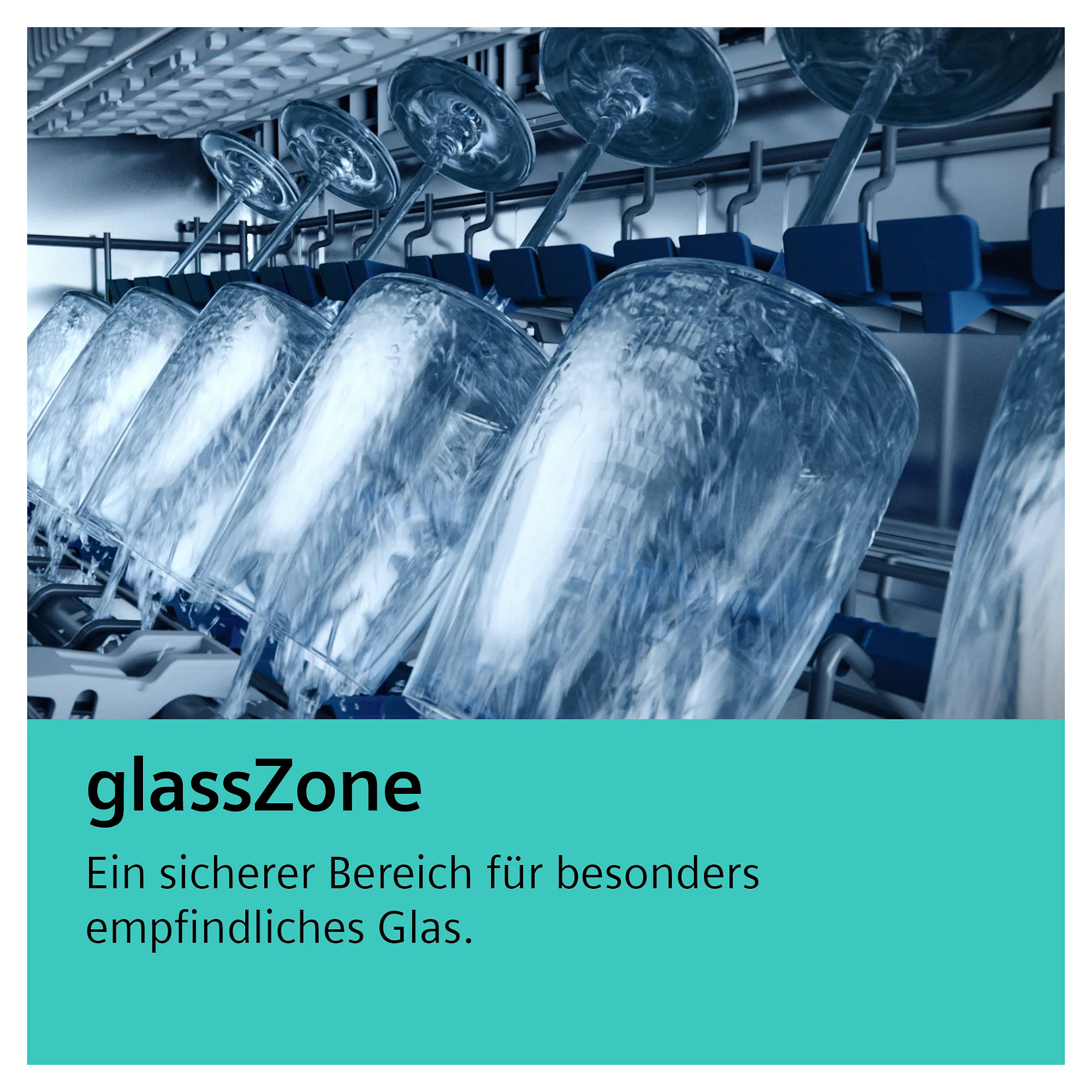 Haben Sie Angst, zerbrechliche Gläser in die Spülmaschine zu stellen? glassZone gibt Ihnen zusätzliche Sicherheit. Sechs spezielle Düsen reinigen die einzelnen Gläser mit einem sanften, kontinuierlichen Wasserstrom gründlich, ohne empfindliche Materialien zu beschädigen. Und die rutschfesten Silikonflächen schützen Ihre wertvollen Gläser vor Erschütterungen und Bewegungen. Damit alles sauber und heil herauskommt.