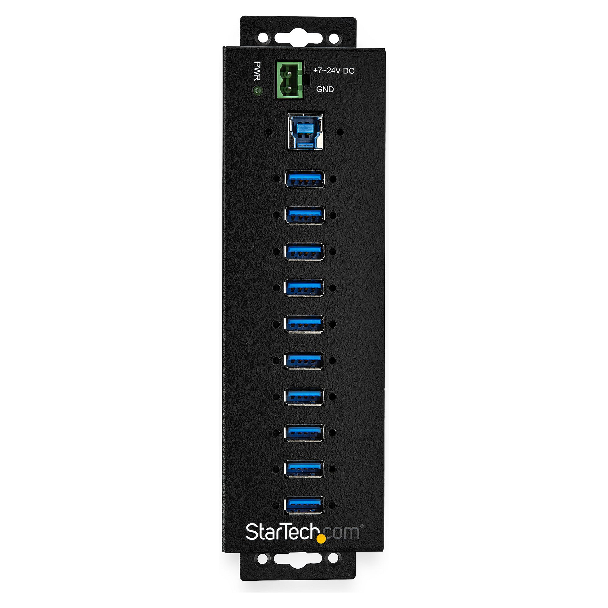 Dieser TAA-konforme industrielle 10-Port-USB 3.2 Gen 1-Hub bietet Ihnen die Skalierbarkeit und Flexibilität bei der Stromversorgung , die Sie in rauen industriellen Umgebungen, Produkt- und Reparaturlabors, Konferenzräumen oder Büro-Workstations benötigen. Mit seinem robusten Metallgehäuse in Industriequalität erfüllt er die hohen Anforderungen, eine große Anzahl von Geräten in Fabriken und Büroumgebungen zu verbinden.
