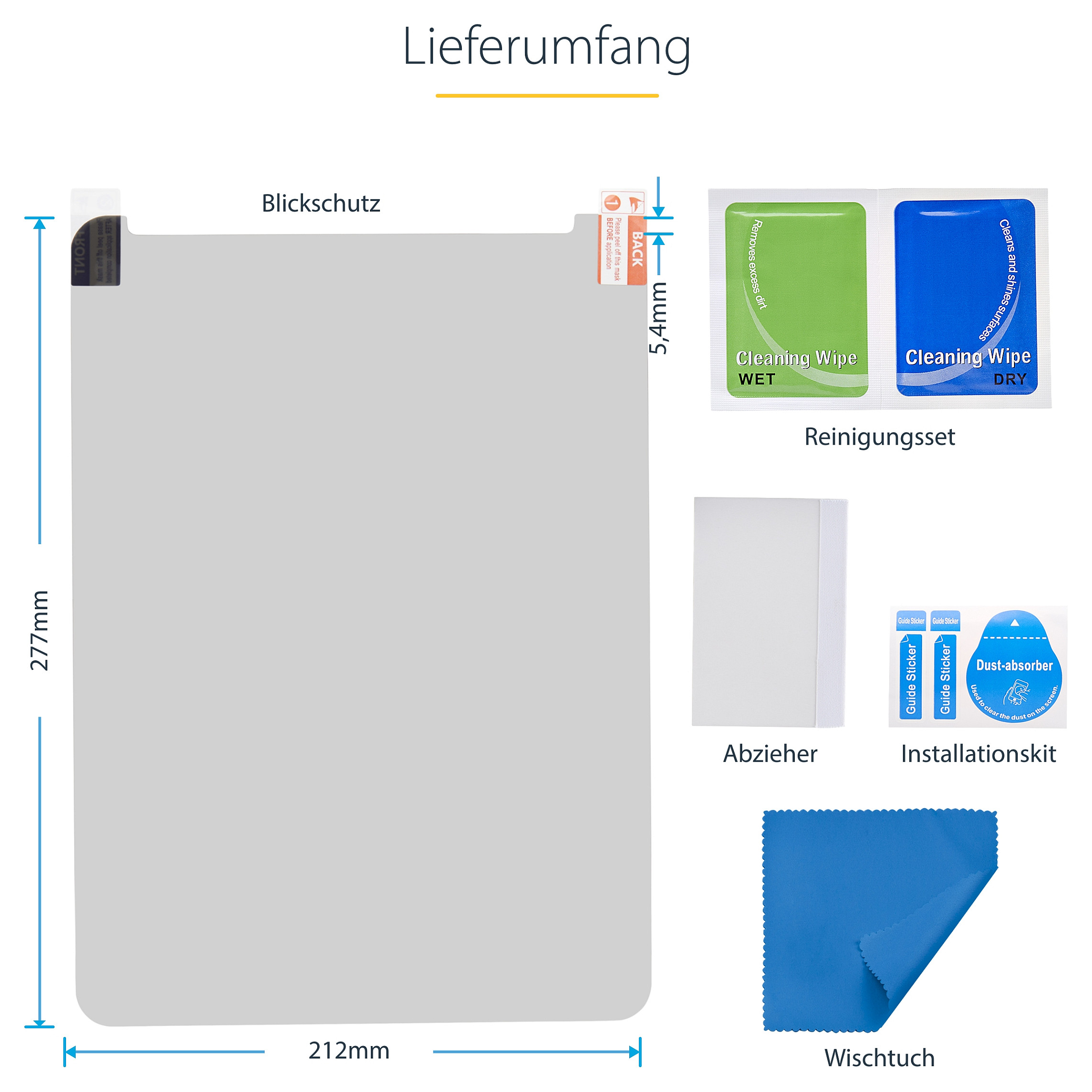 Die Displayschutzfolie ist kompatibel mit der dritten Generation und neueren 12.9" iPad Pro und bietet eine präzise Passform, die weder das Display noch die Kamera oder die Lautsprecher beeinträchtigt. Das mitgelieferte Installationskit und die Schritt-für-Schritt-Anleitung ermöglichen eine einmalige Anbringung auf dem iPad-Bildschirm.