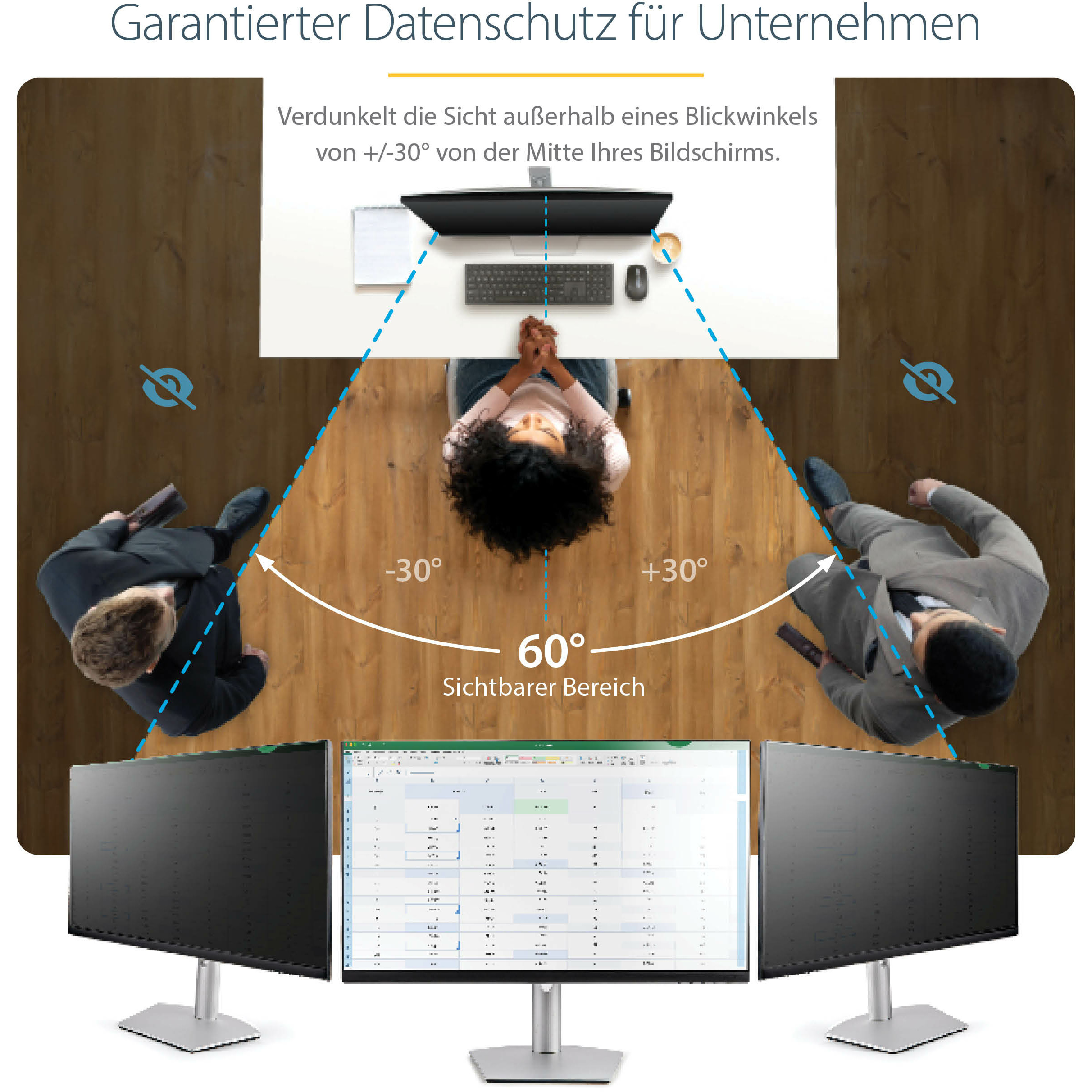 Verhindern Sie visuelles Ausspähen, indem Sie den Blickwinkel Ihres Computer Bildschirms einschränken