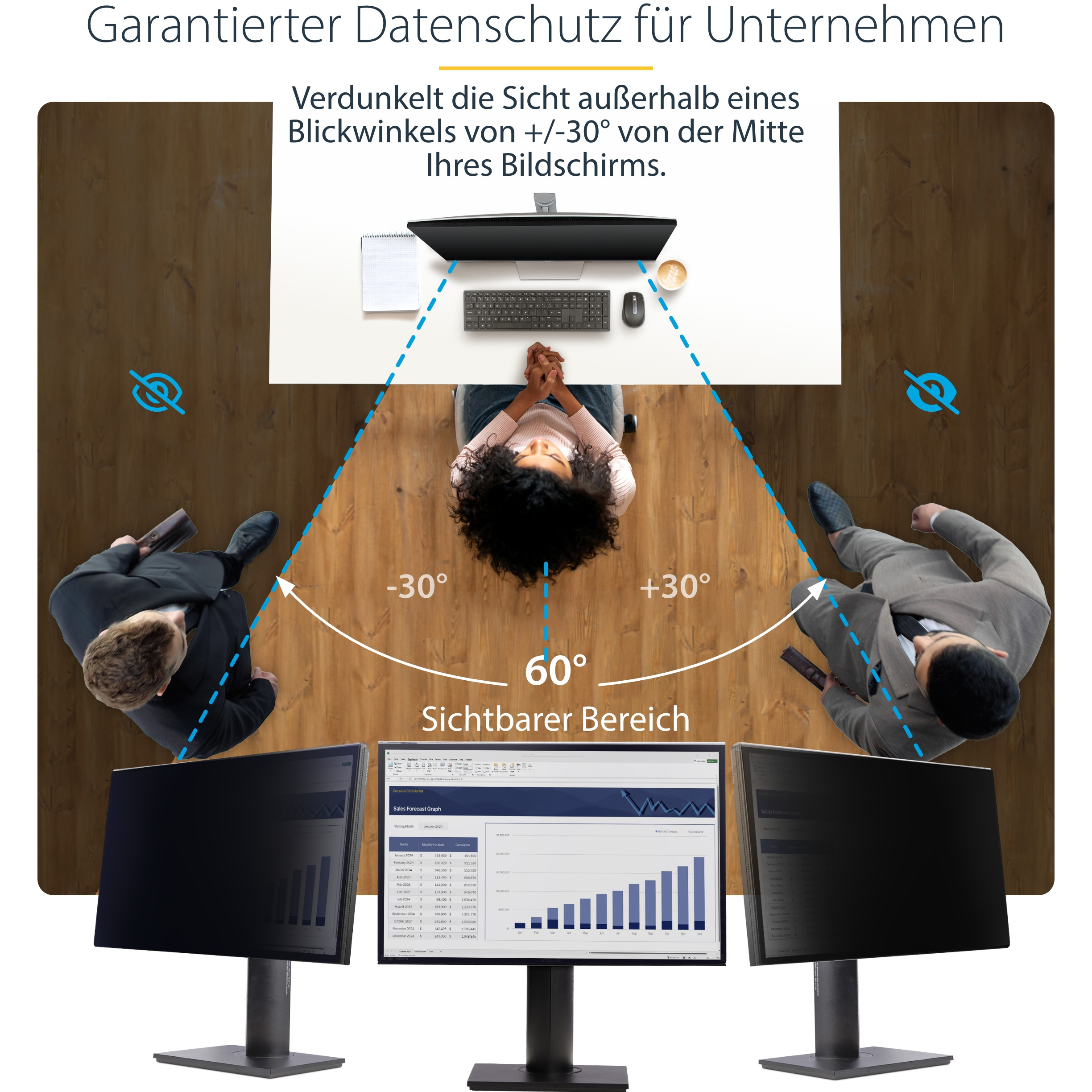 Der hängende Schutzfilter ist eine bequeme Lösung, die vertrauliche Daten vor unerwünschten Blicken schützt und gleichzeitig eine freie Sicht von 60 Grad (+/- 30 Grad von der Mitte) für den Benutzer gewährleistet.