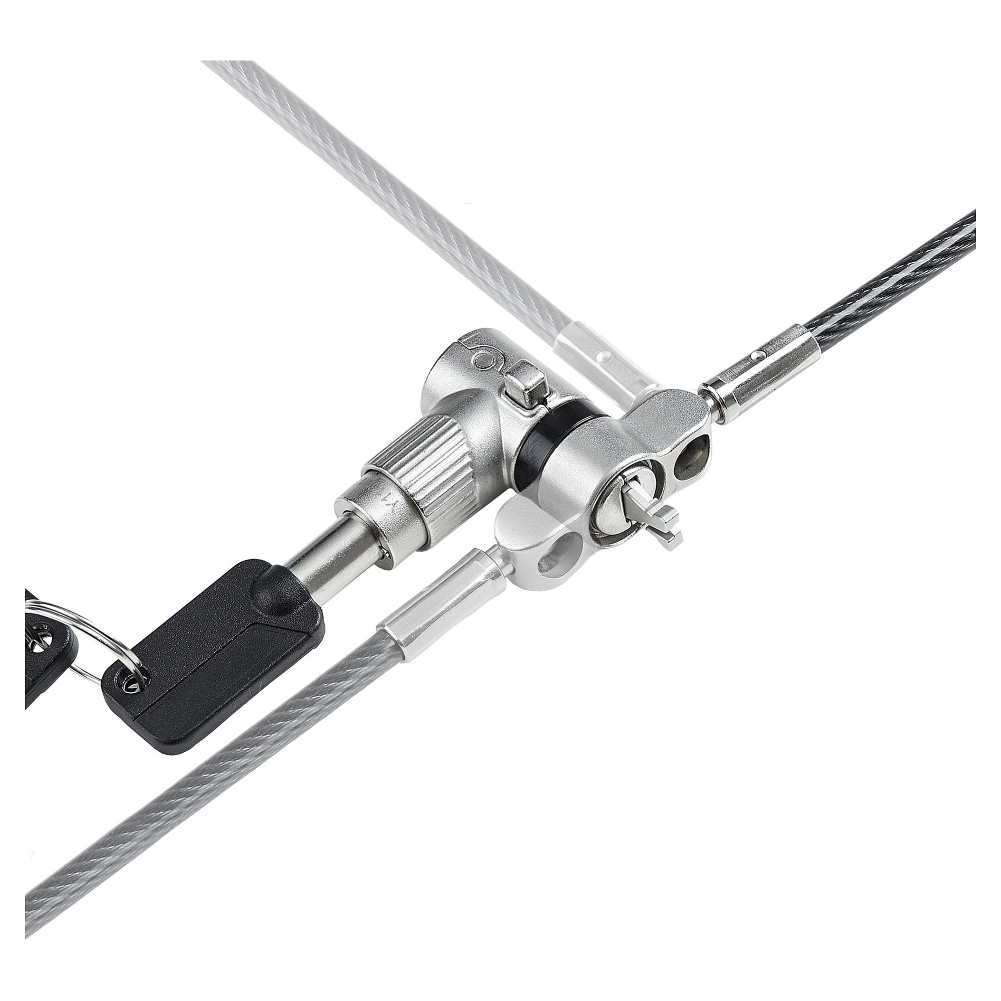 Das Schloss hat einen Generalschlüssel und enthält einen Satz von zwei Schlüsseln. Das Schloss hält einer Zugkraft von 91,2kg für den K-Slot, 98,8kg für den Nano und 61,2kg für den Noble Wedge stand. Damit ist sichergestellt, dass der Computer oder andere Geräte vor Diebstahl geschützt sind.