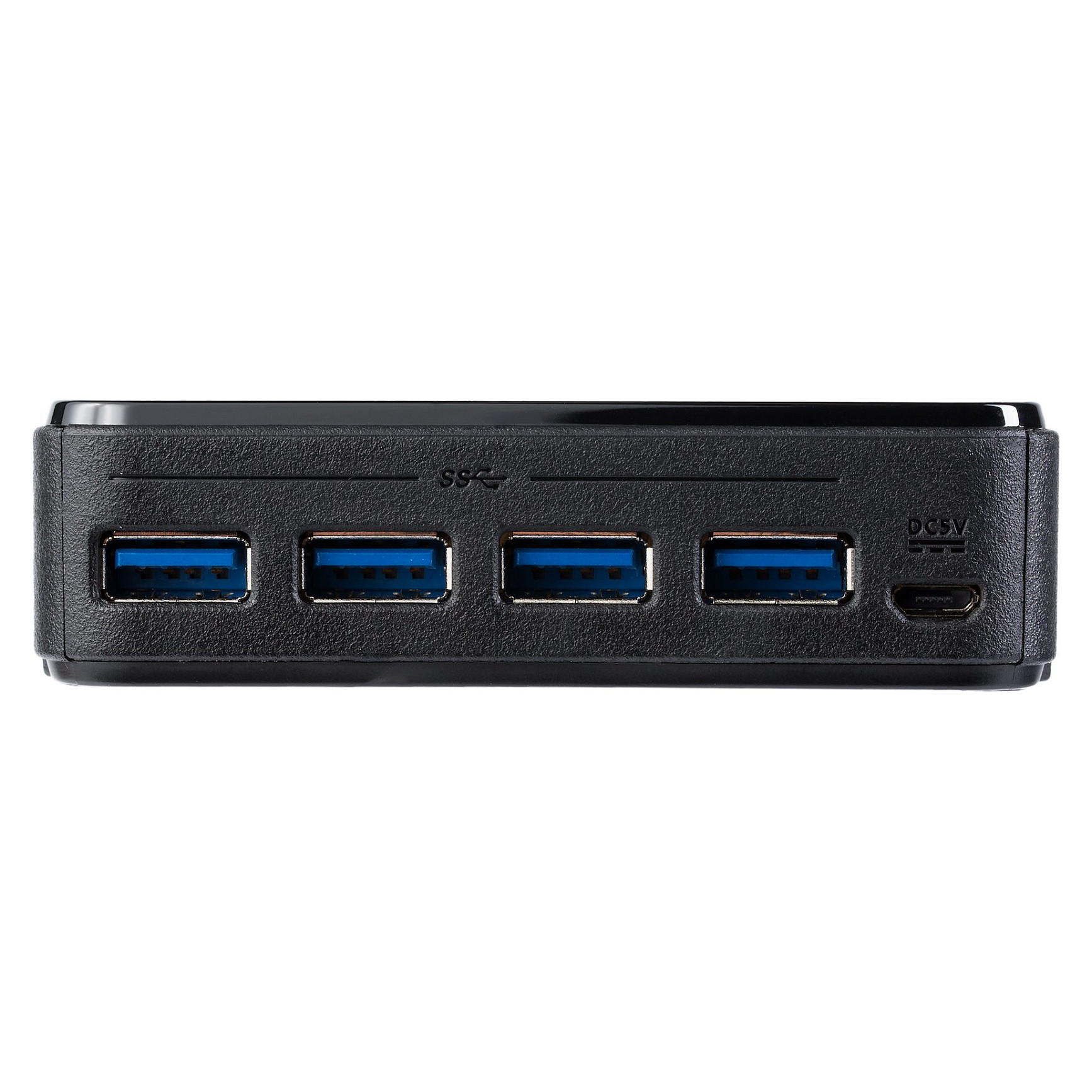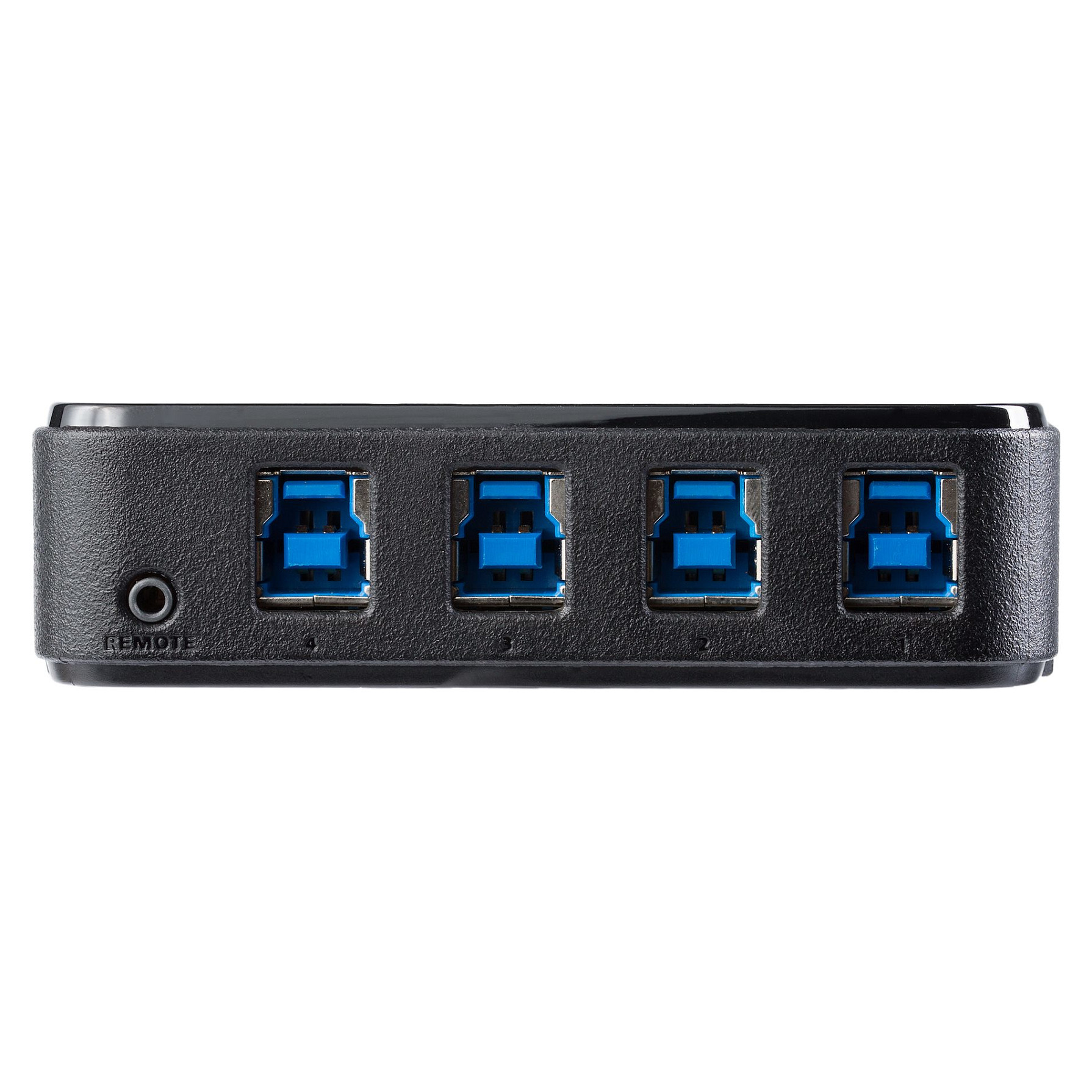 Mit diesem 4x4-USB-3.0-Sharing-Switch für Peripheriegeräte können Sie vier USB-3.0-Peripheriegeräte auf vier verschiedenen Computern nutzen. Dies ist eine kostengünstige Möglichkeit, einen produktiveren, platzsparenderen Arbeitsbereich zu schaffen.