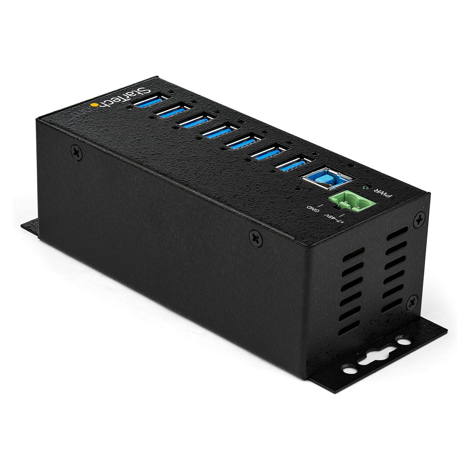 Dieser industrielle USB-Hub bietet zuverlässige Leistung mit einem robusten Metallgehäuse. Er unterstützt einen großen 7-48V-DC-Klemmleisteneingang und bietet Ihnen die Flexibilität, den Hub je nach Bedarf auf der Grundlage Ihrer eigenen Eingangsleistung zu betreiben.