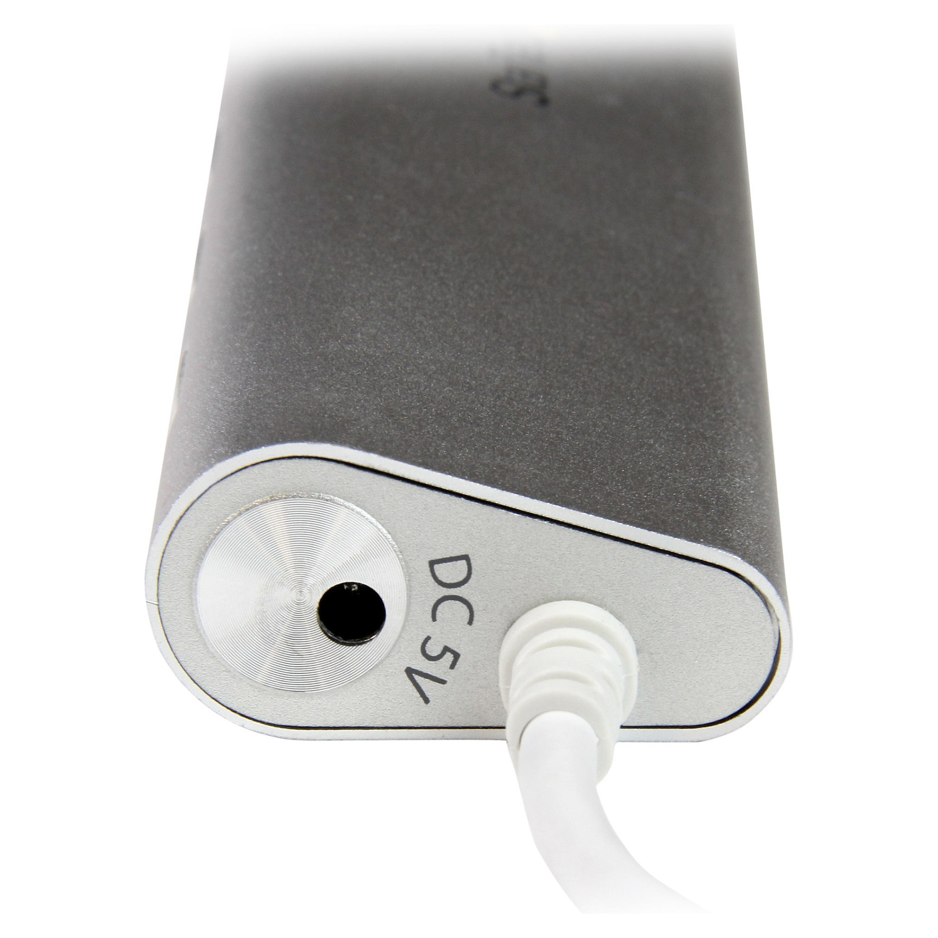 Dank seines robusten Aluminiumgehäuses bietet der Hub zuverlässigen Schutz und eignet sich daher perfekt für den Weg von zu Hause ins Büro. Außerdem nimmt der kompakte USB-Hub nur wenig Platz auf dem Schreibtisch ein, so dass Sie ihn in Hot-Desk- oder BYOD-Umgebungen (Bring Your Own Device) verwenden können.