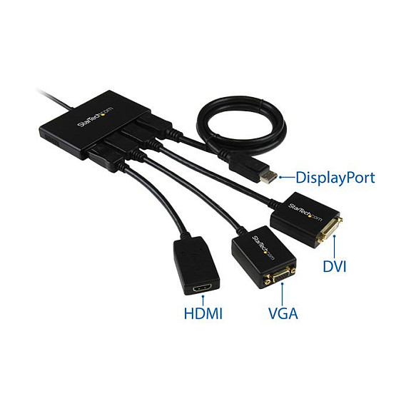 Mit dem MST-Hub können Sie DisplayPort-Videoadapter und -Kabeladapter verwenden, mit deren Hilfe Sie HDMI-, VGA- oder DVI-Displays anschließen können. So können Sie sicher sein, dass Ihr MST-Hub mit praktisch jedem Fernseher, Monitor oder Projektor kompatibel ist. Dieser MST-Hub ist VESA- und DisplayPort-zertifiziert und unterstützt DP 1.2-fähige Systeme für eine nahtlose Integration in vorhandene Videoausrüstung.