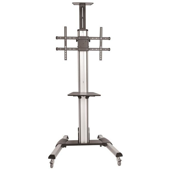 Mit diesem mobilen TV-Wagen können Sie einfach ein mobiles Medien-Center schaffen und so praktisch und kostengünstig AV-Geräte in verschiedenen Räumen verwenden. Das schlanke und robuste Design des TV-Wagens erlaubt die sichere Montage von TVs in Größen von 32 bis 75 Zoll (mit 40 kg Maximalgewicht) und bietet ein Multimediaregal für einen Computer, Medienplayer oder eine Tastatur. Außerdem verfügt der TV-Wagen über ein Kameraregal für Webkonferenzen.