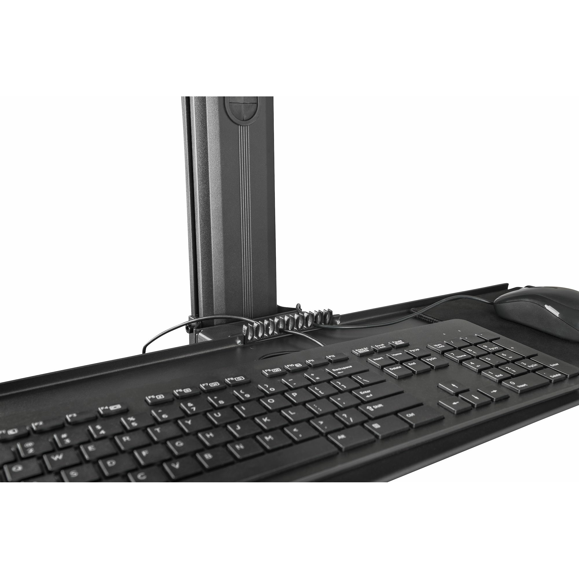 Dieser ergonomische mobile Arbeitsplatzwagen bietet Benutzern eine voll funktionsfähige, eigenständige Einrichtung. Er unterstützt einen einzelnen Monitor, verfügt über eine ausziehbare Tastatur- und Mausablage und ist mit einem integrierten CPU-Halter für Ihren PC-Tower ausgestattet. Die Rollen können leicht verriegelt werden, um zu verhindern, dass sich der mobile Arbeitsplatz bewegt, und um den Benutzern die Möglichkeit zu geben, bei Bedarf von mobil auf stationär zu wechseln.