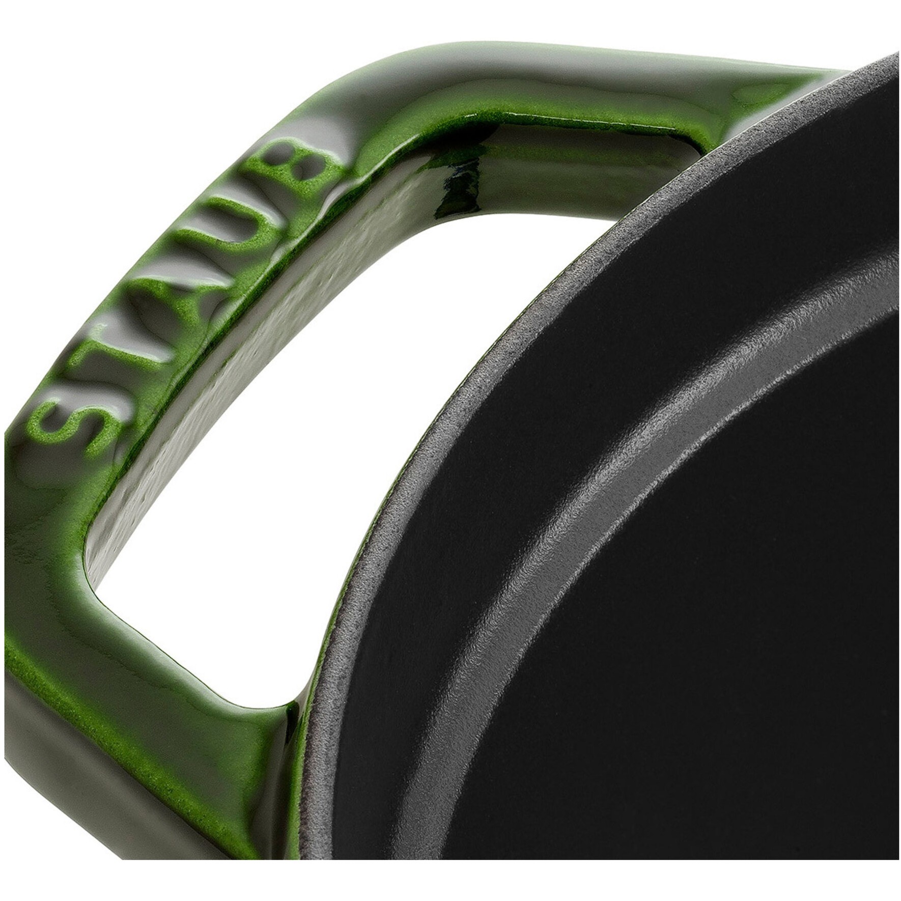 Ein Schmorgericht hat ein besonderes Aroma, ist leicht zuzubereiten und immer wieder eine große Überraschung, wenn es serviert wird. Eine Möglichkeit bei der Unterstützung der Zubereitung ist die Cocotte aus dem Hause Staub. Bei einer Cocotte handelt es sich um einen französischen Schmortopf, der bei leckeren Fisch-, Fleisch- oder Gemüsegerichten verwendet werden kann. Die Handhabung dieser ovalen Cocotte in Basilikumgrün ist einfach, da sie über einen großen, dicht schließenden Deckel und zwei Gusseisengriffe an den Seiten verfügt. Hinzu kommt, dass Sie dieses Produkt gut per Hand reinigen können: Schnell ist die ovale Cocotte in Basilikumgrün mit 6,7 l Fassungsvermögen und einem Durchmesser von 33 cm wieder im Einsatz. Eine Besonderheit ist, dass sie auf allen Herdarten verwendet werden kann, auch auf Induktionsplatten. Darüber hinaus besteht dieser Schmortopf aus mehreren Beschichtungen aus Gusseisen und Emaille. Außerdem wird eine schnelle und gezielte Wärmeverteilung garantiert, die vom Boden bis zum Deckel reicht. Die Innenbeschichtung ist mattschwarz und hilft den köstlichen Schmoreffekt zu intensivieren. Zusätzlich verbessert sich die Emaillierung, je öfter die Cocotte im Einsatz ist. Mit der Cocotte aus dem Hause Staub servieren Sie herrliche Schmorgerichte und begeistern Ihre Freunde und Familie mit einer herzhaften Mahlzeit.
