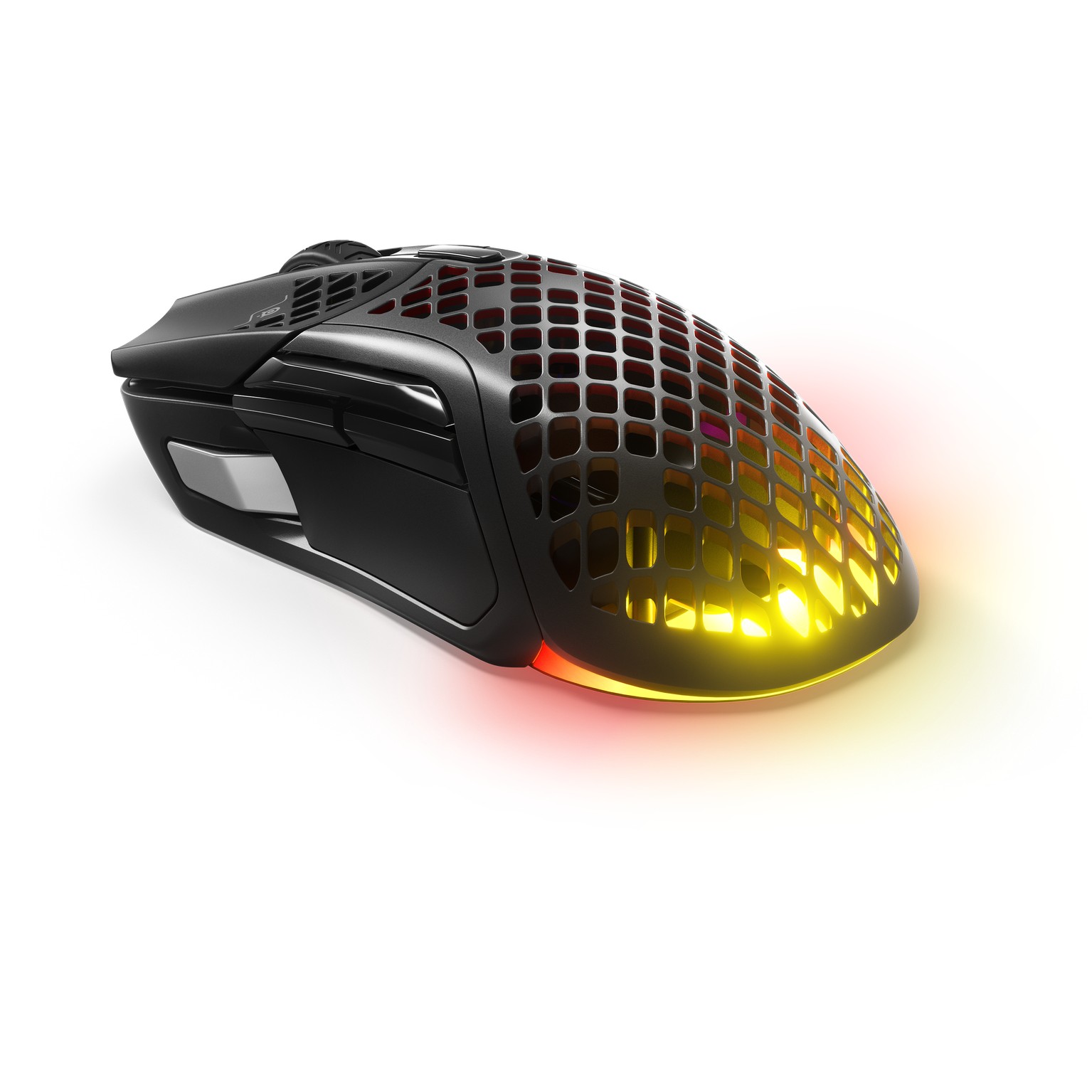 Steelseries Aerox 5 Wireless. Formfaktor: rechts. Bewegungerfassungs Technologie: Optisch, Geräteschnittstelle: Bluetooth, Bewegung Auflösung: 18000 DPI, Reaktionszeit: 1 ms, Tastentyp: Gedrückte Tasten, Knopfanzahl: 9, Scroll Typ: Rad, Beschleunigung (Max.): 40 G. Farben der Beleuchtung: Multi. Energiequelle: Batterien. Produktfarbe: Schwarz