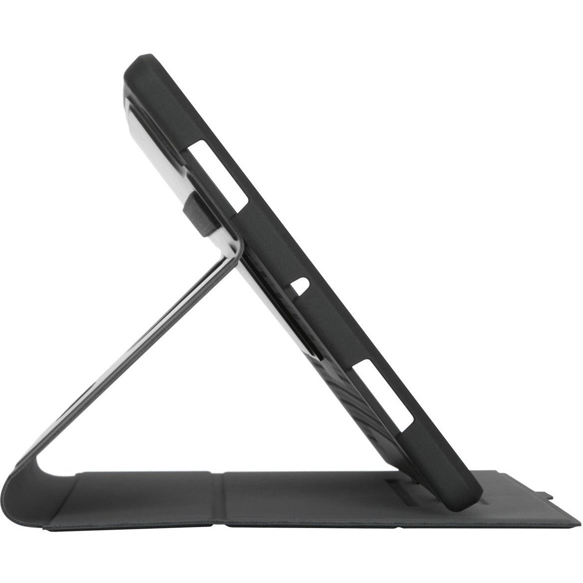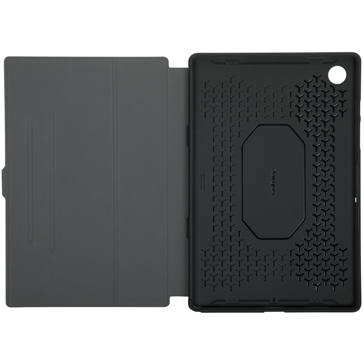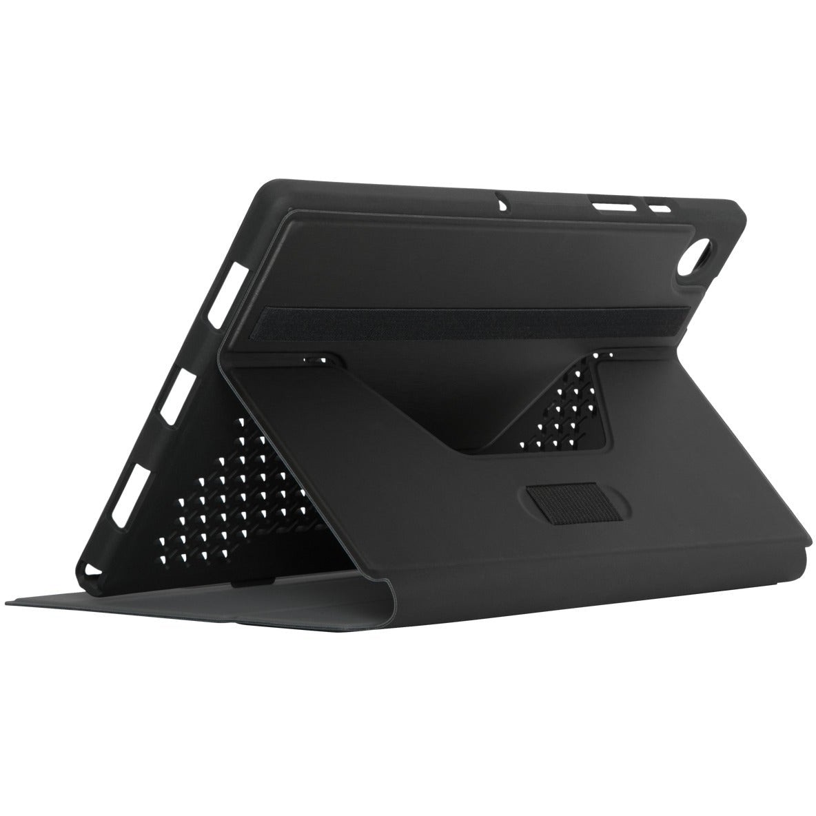 Durch einfaches Umklappen verwandelt sich Ihre Tasche in einen stabilen Ständer für komfortables Tippen. Durch erneutes Umklappen können Sie das Gerät aus praktisch unbegrenzten Winkeln betrachten. Der elastische Stylus-Halter und der Ladeanschluss für den Samsung S Pen® sorgen für zusätzlichen Komfort und halten Ihren S Pen® einsatzbereit oder Ihren Stylus in Reichweite. Präzise Aussparungen bieten einfachen Zugang zu Ihren Bedienelementen, Anschlüssen und Kameraobjektiven. Sogar Ihr Audio wird durch die speziellen Lautsprecheranschlüsse verbessert.