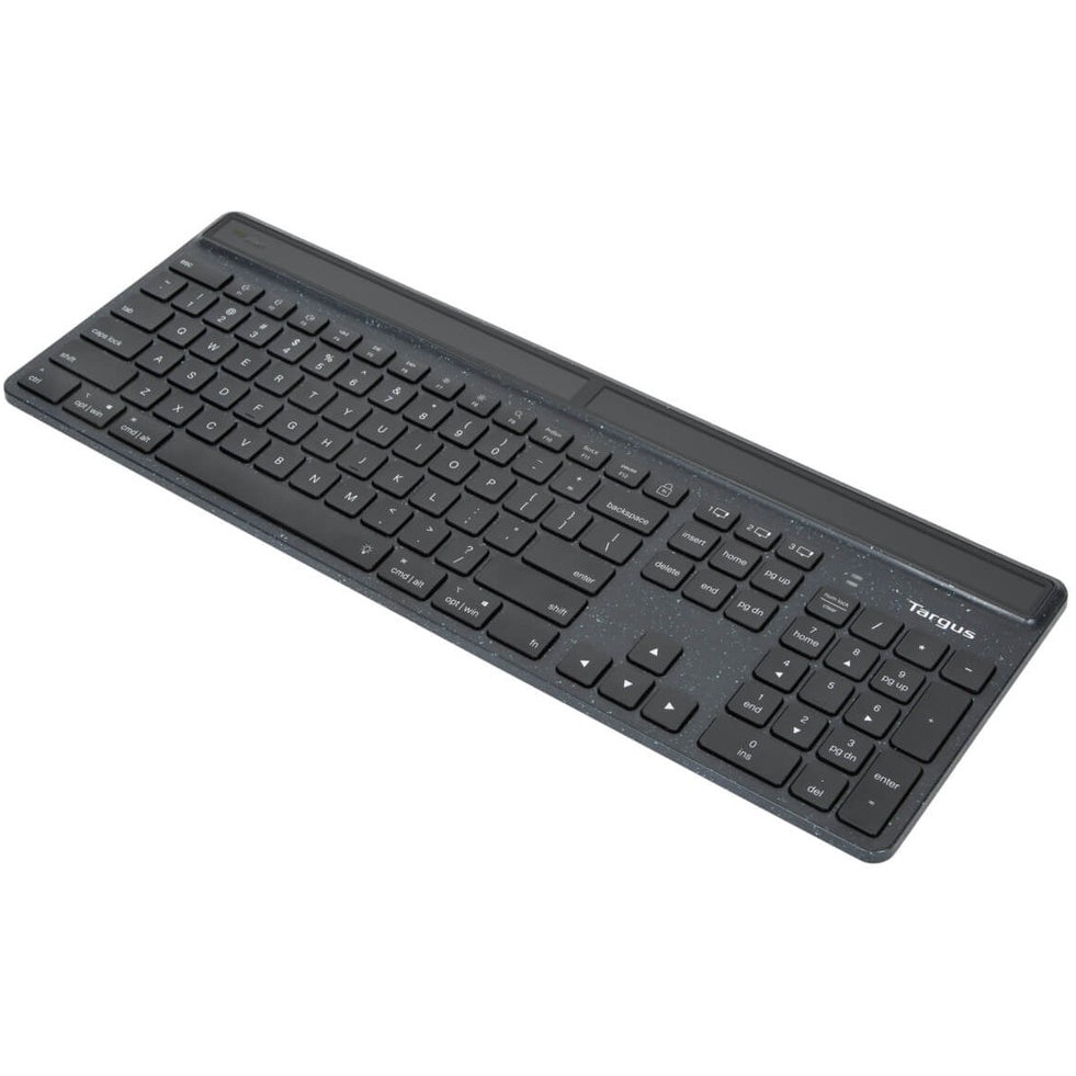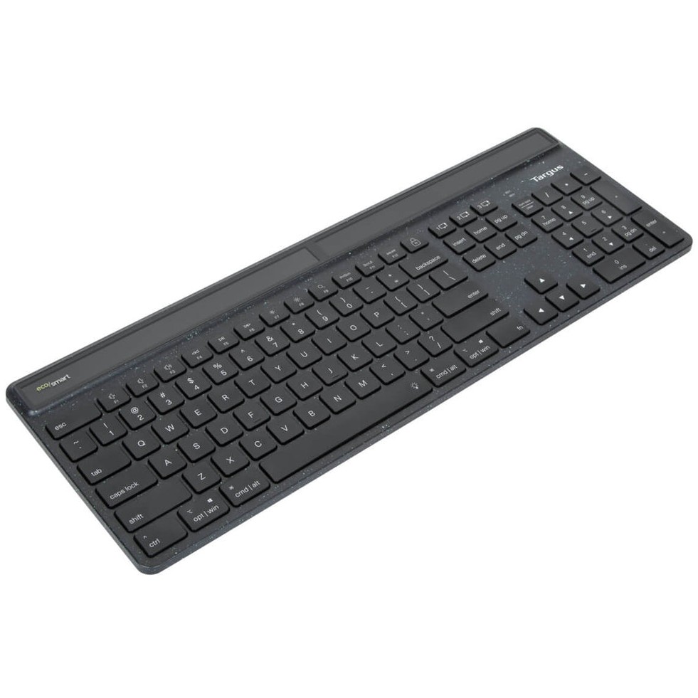 Targus EcoSmart AKB868UK. Tastatur Formfaktor: Volle Größe (100%). Tastatur-Stil: Gerade. Übertragungstechnik: Kabellos, Geräteschnittstelle: Bluetooth, Tastaturaufbau: QWERTY. Typ der Hintergrundbeleuchtung: LED. Empfohlene Nutzung: Universal. Produktfarbe: Schwarz
