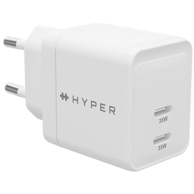 HYPER HJG35EU. Aufladetyp: Drinnen, Energiequelle: AC, Aufladekompatibilität: Kopfhörer, Kopfhörer, Smartphone, Uhr, USB Typ-C Anzahl Anschlüsse: 2, Schnellladung. Produktfarbe: Weiß