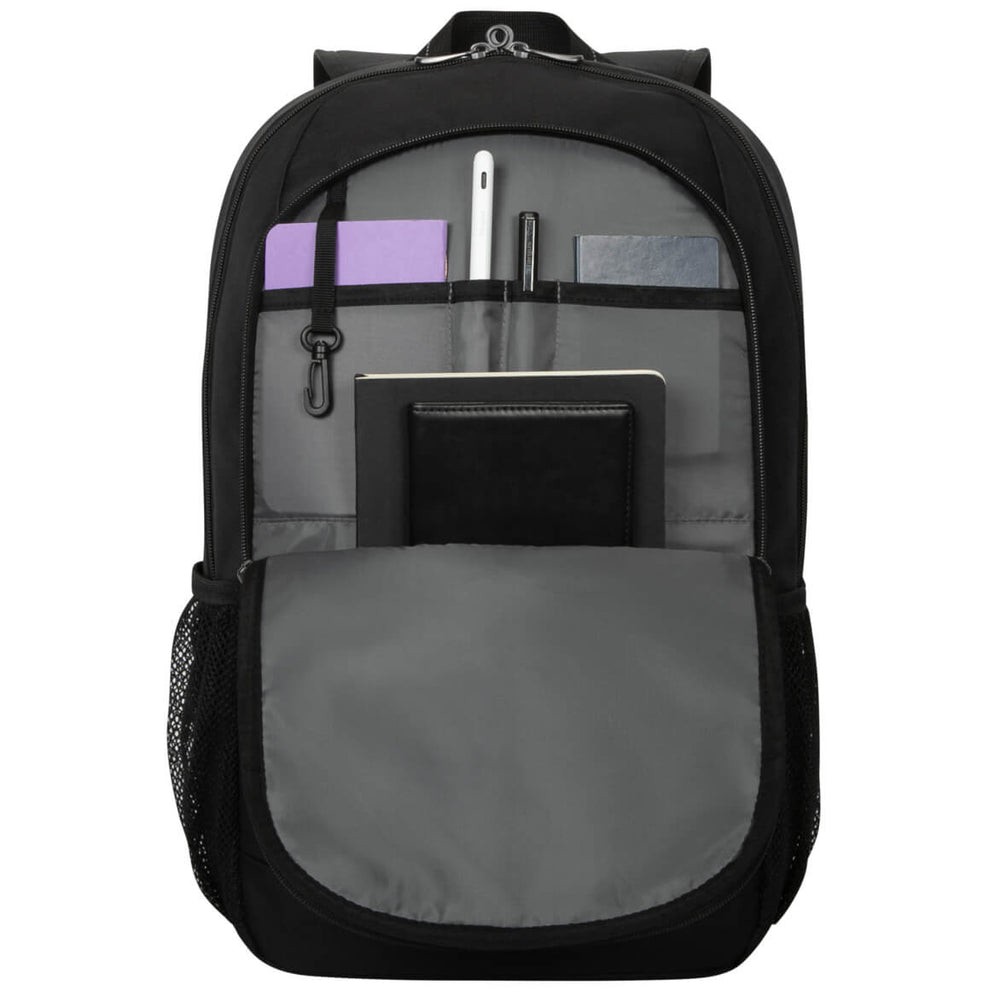 Mit dem Targus® 15-16" Modern Classic Backpack können Sie Ihre Arbeitsutensilien stilvoll transportieren. Das gepolsterte Hauptfach ist mit mehreren Taschen und viel Stauraum ausgestattet und schützt Ihr Notebook von innen, während abschließbare Reißverschlüsse Ihre Ausrüstung von außen schützen. Die leichte Tasche zeichnet sich durch Form und Funktion aus, mit einem aufstellbaren Design zum einfachen Beladen, einem geräumigen Fassungsvermögen von 19 Litern, einer integrierten Workstation und zwei leicht zugänglichen Taschen für Wasserflaschen.