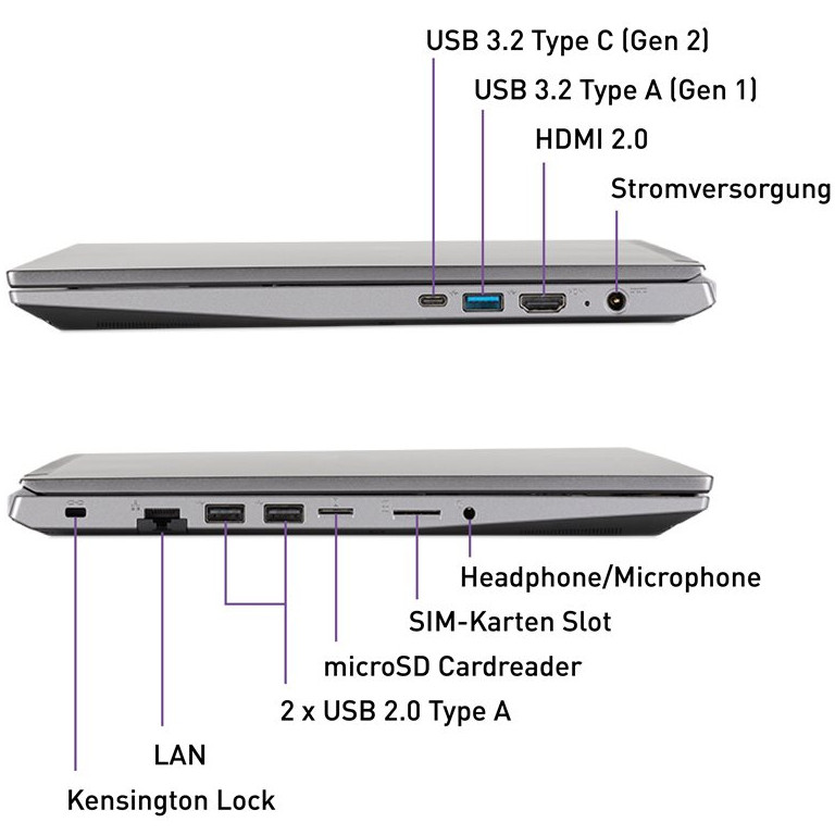 Zusätzlich zu den Schnittstellen wie USB-C, HDMI, LAN kann das Gerät mit einer weiteren 2,5“ SSD und einem LTE Modul ausgestattet werden.