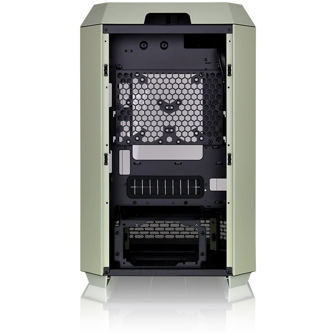 Thermaltake 300 Matcha Green. Formfaktor: Micro Tower, Typ: PC, Produktfarbe: Grün. Platzierung der Stromversorgung: Boden, Unterstützte Stromversorgungs-Formfaktoren: ATX. Durchmesser unterstützte Seitenlüfter: 120 mm, Durchmesser unterstützter Rückseitenlüfter: 120,140 mm, Unterstützte Lüfterdurchmesser (oben): 120,140 mm. Unterstützte Hard-Disk Drive Größen: 3.5", SSD-Formfaktor: 2.5". Breite: 342 mm, Tiefe: 281 mm, Höhe: 551 mm
