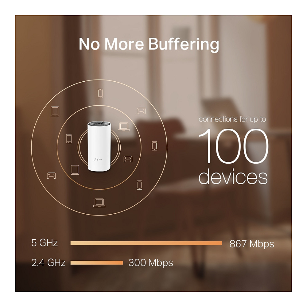 Dank der TP-Link Mesh-Technologie versorgt der Deco M4 durch die nahtlose Zusammenarbeit mehrerer Einheiten Ihr ganzes Zuhause mit unterbrechungsfreiem WLAN.