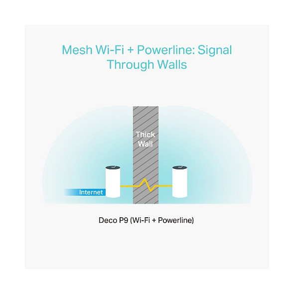 Deco P9 is compatible with other Deco models to form Mesh network. Expand Mesh Wi-Fi coverage anytime by simply adding more Decos.