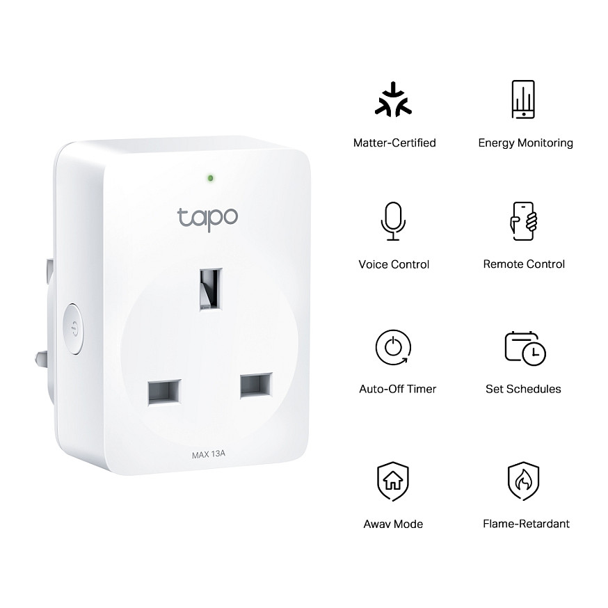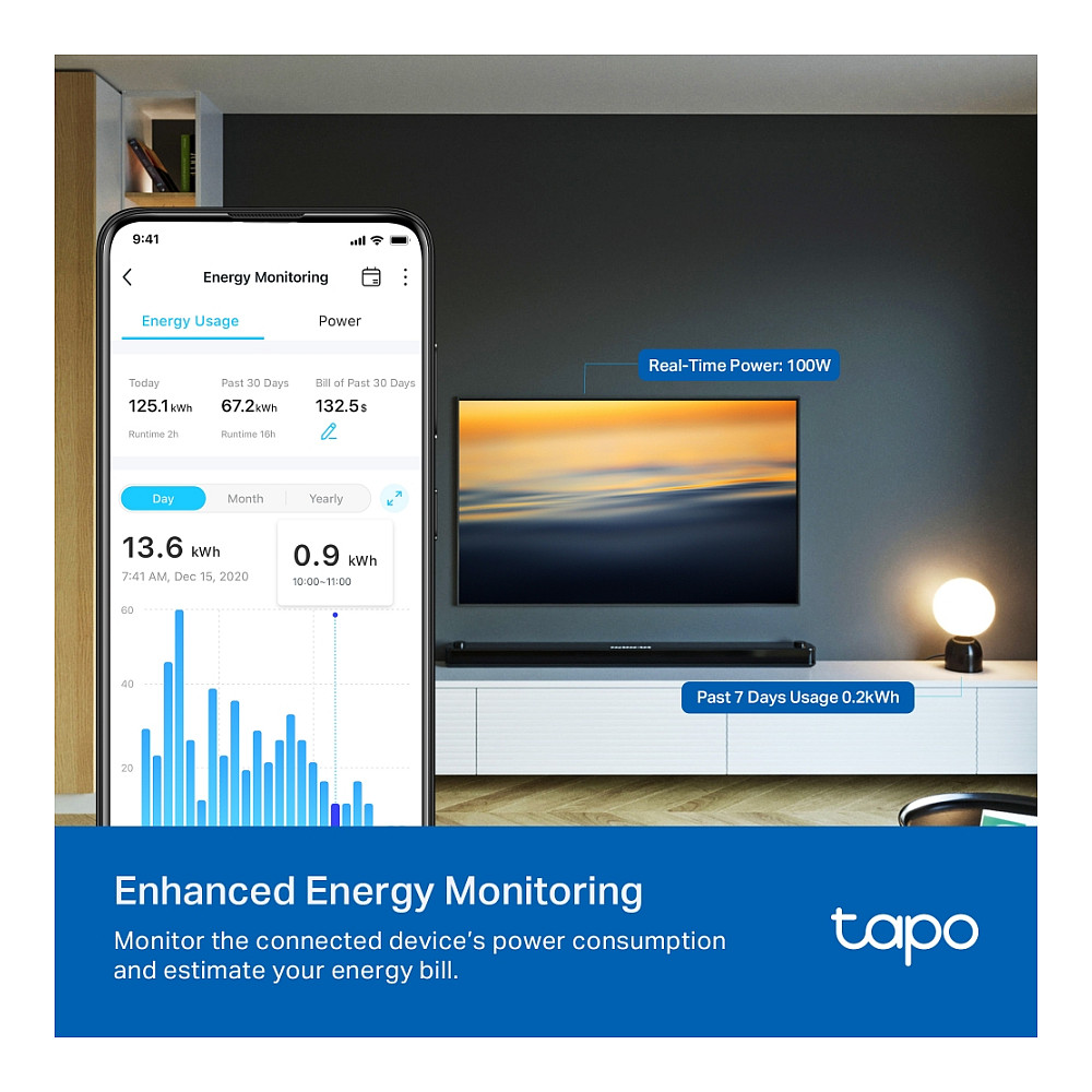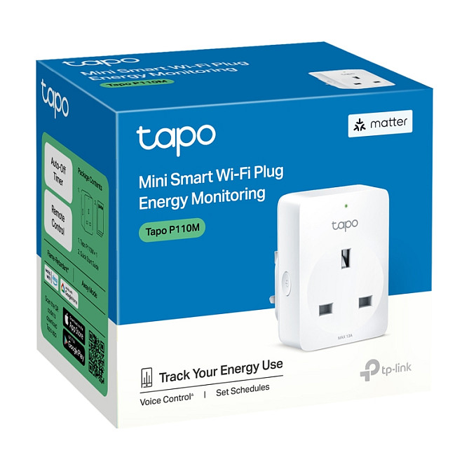 TP-Link Tapo P110M. Unterstützte Positionierung: Drinnen, Produktfarbe: Weiß, Gehäusematerial: Polycarbonat (PC). Übertragungstechnik: Kabellos, Wireless-Technologien: Bluetooth / Wi-Fi, Frequenz: 2400 MHz. Maximale Eingangsleistung: 2990 W, AC Eingangsspannung: 100 - 240 V, AC Eingangsfrequenz: 50 - 60 Hz. Breite: 72,5 mm, Tiefe: 51,5 mm, Höhe: 30,6 mm. Menge pro Packung: 1 Stück(e)