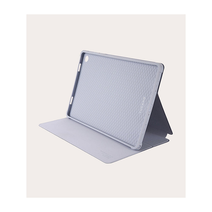 Hülle für Samsung Galaxy Tab aus PU mit Nyloneffekt, hergestellt aus recyceltem Kunststoff. Die Innenseite besteht aus weichem, kratzfestem Material und die innere Rückschale, ausgestattet mit einer Öffnung für die Kamera, besteht aus weichem, schützendem TPU. Die Frontabdeckung lässt sich in einen praktischen Aufsteller zum Schreiben und Lesen verwandeln. An der Außenseite befindet sich ein integrierter Ladeschacht für den S Pen. Für die Herstellung dieses Koffers wurden 3 500-ml-Plastikflaschen recycelt.