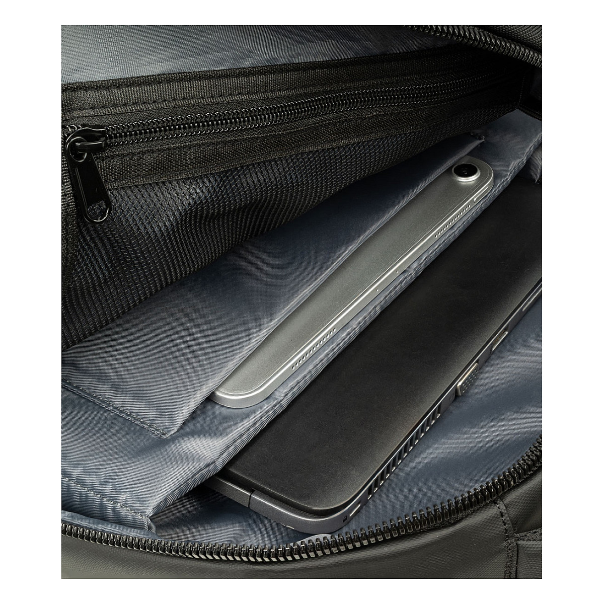 Der Rucksack für MacBook Pro 16'' und 15,6" laptop 15,6'' ist mit dem Anti-Gravity System ausgestattet: eine elastische Aufhängung der Schultergurte reduziert das Gewicht auf Schultern und Rücken bei Bewegung. Das Anti Gravity System verbessert die Körperhaltung, reduziert die Muskelanstrengung und verringert die Anspannung der Rücken- und Nackenmuskulatur dank einer gleichmäßigen Verteilung des Gewichts auf Schultern und Becken. Marte Gravity besteht aus einem hochdichtem Stoff und bietet eine optimale Aufteilung des inneren und äußeren Raums. Das geräumige Innenfach verfügt über zwei gepolsterte Fächer zum geschützten Transport von Laptop und Tablet. Auf der muktifunktionale Frontseite befinden sich Fächer mit unterschiedlicher Größe, die mit hochwertigen Reißverschluss ausgestattet sind. Zwei Seitentaschen sind für eine Wasserflasche oder einen Regenschirm geeignet. Der Rückenteil verfügt über ein ergonomisches Rückenteil, gepolsterte Schulterriemen mit Aufhängungssystem, eine Trolleyschlaufe und eine Sicherheitstasche. Eine herausziehbare Regenhülle, im Boden des Sacks, schützt den Rucksack bei Regen