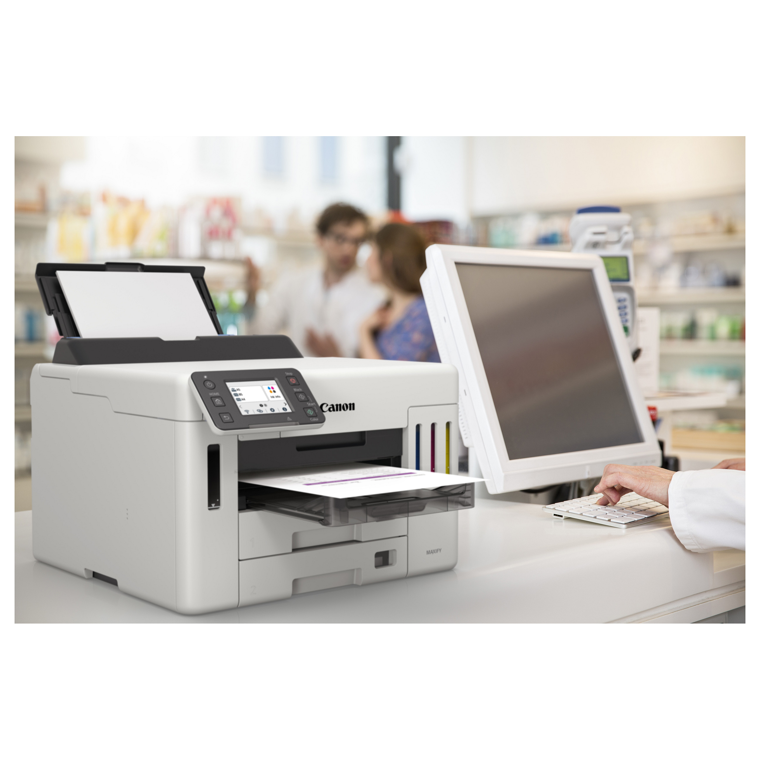 Dank seiner Kompatibilität mit verschiedensten Medien und dem Tintentank mit hoher Kapazität kann dieser Drucker deine geschäftliche Produktivität und Vielseitigkeit deutlich steigern. Dank des benutzerfreundlichen Designs kannst du eine Vielzahl hochwertiger Dokumente, Etiketten und Umschläge mit unterschiedlichsten Grammaturen drucken – ein idealer Business-Drucker zu niedrigen Gesamtbetriebskosten (TCO).WLAN, LAN, Drucken, Cloud, A4, 600 x 1200 dpi, 24 ipm/15.5 ipm, 2.7 Zoll (Farb-Touchscreen), 10.4 kg