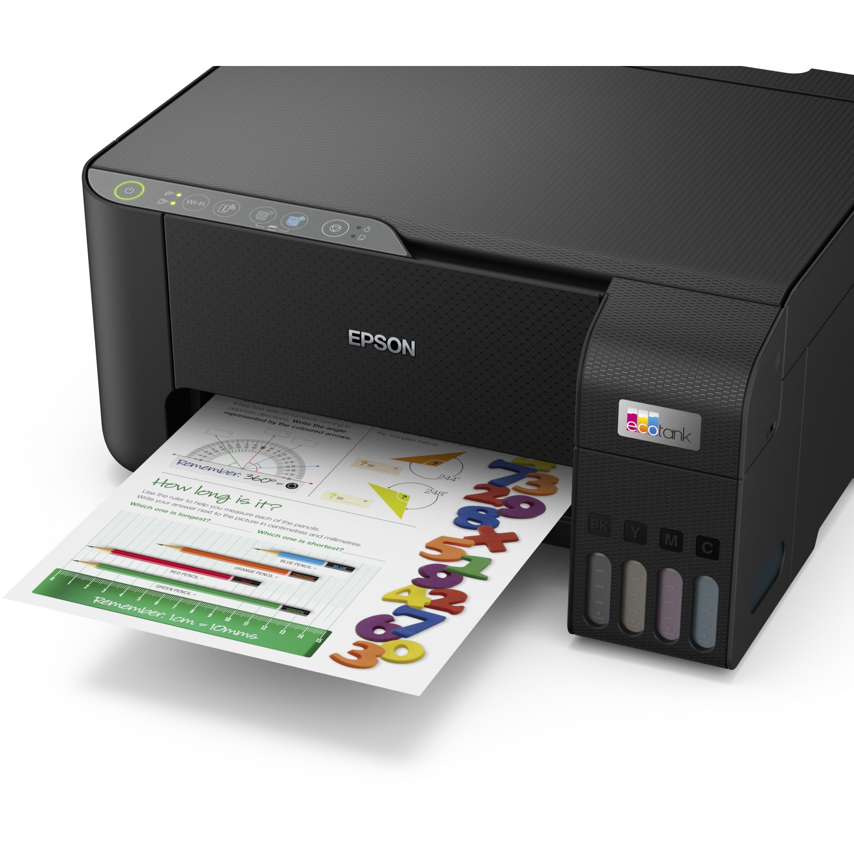 EcoTank ermöglicht komfortables Drucken zu Hause. Die großvolumigen Tintentanks ermöglichen ein unkompliziertes Nachfüllen. Da die Tintenflaschen über ein Schlüssel-Schloss-Prinzip funktionieren, kann nur die jeweils richtige Tinte eingefüllt werden. An der vorderen Tintenfüllstandsanzeige können Sie leicht erkennen, wann Sie den Drucker nachfüllen müssen.
