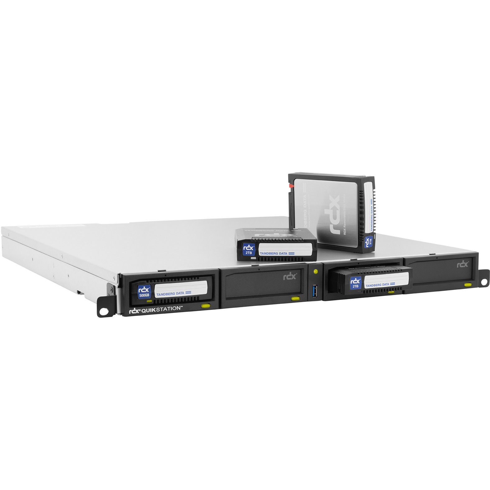 Die Tandberg Data RDX® QuikStation™ 4 ist ein iSCSI-Wechseldatenträger-Array, das entwickelt wurde, um eine flexible Plattform für Datenschutz und Offsite-Disaster-Recovery für physische oder virtuelle SMB- und SME-Umgebungen sowie Hybrid-Cloud-Anwendungen bereitzustellen.RDX QuikStation 4 RM, 4-Bay, 4x 1Gb Ethernet, Wechselplatten Array, 1U rackmount