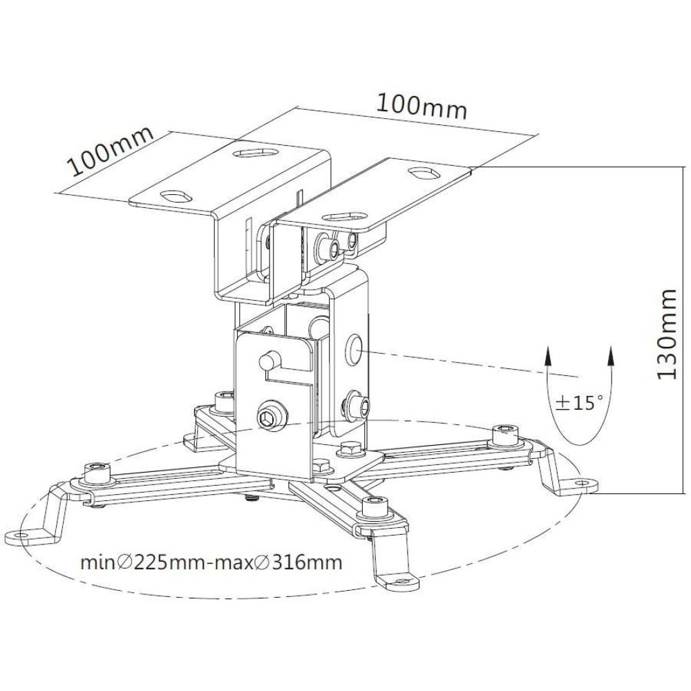 Techly ICA-PM 2S. Befestigungstyp: Zimmerdecke, Höchstgewichtskapazität: 20 kg, Produktfarbe: Silber. Höhe: 130 mm, Sockelbreite: 10 cm, Sockellänge: 10 cm