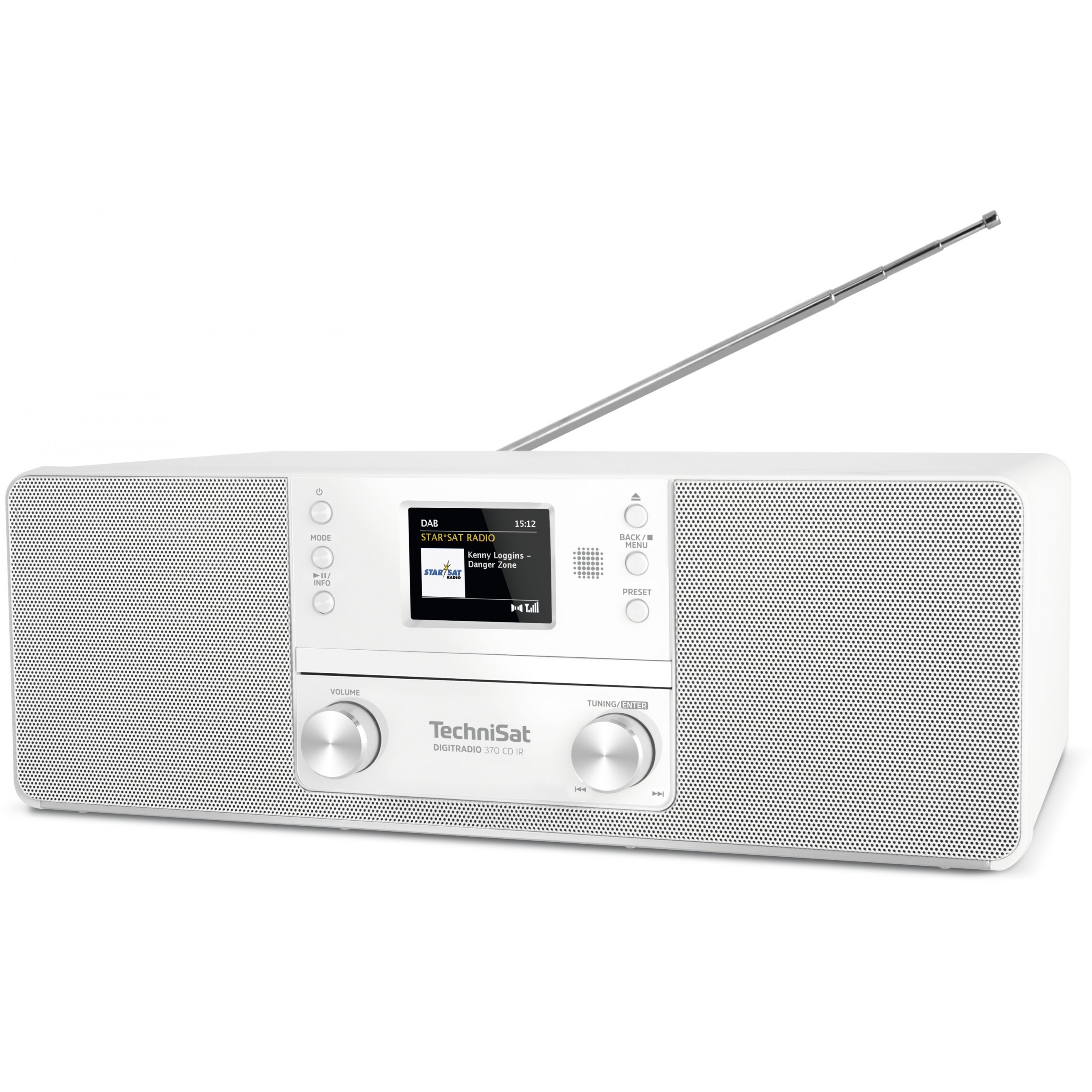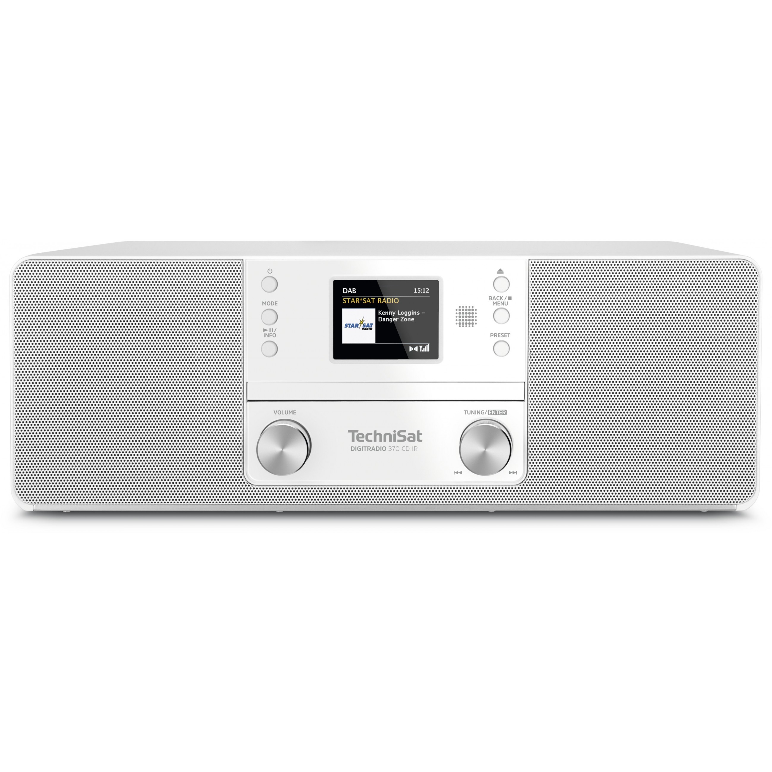 Beim DIGITRADIO 370 CD IR findet alles Platz, was für beste Unterhaltung sorgt. Das kompakte und elegante Gerät begeistert mit einer riesigen Sendervielfalt, wenn es Radio über DAB+, UKW und das Internet empfängt. Hinzu kommt der integrierte CD-Player, der das DIGITRADIO 370 CD IR als Alternative zur klassischen Kompaktanlage positioniert. Der CD-Player spielt sowohl Audio-CDs als auch MP3-Dateien ab und unterstützt CD-Rs und CD-RWs. Darüber hinaus können MP3-Dateien von einem externen USB-Datenträger abgespielt werden. Über den USB-Anschluss werden verbundene Mobilgeräte, wie z. B. ein Smartphone, sogar geladen. Via Bluetooth empfängt das DIGITRADIO 370 CD IR zudem kabellos Musik von Mobilgeräten. Das DIGITRADIO 370 CD IR begeistert nicht nur mit der Vielfalt an Musikquellen, sondern auch mit exzellentem Klang. Zwei leistungsstarke Lautsprecher sorgen für einen fantastischen Stereosound. Das 2,4“ große Farbdisplay zur Anzeige von Zusatzinformationen, Sender- und Titelnamen sowie das intuitive Bedienkonzept gestalten die Navigation durch das breite Funktionsangebot des DIGITRADIO 370 CD IR sehr einfach. Alternativ steuern Sie das Musiksystem entweder mit der im Lieferumfang enthaltenen Fernbedienung oder per TechniSat CONNECT-App auf Ihrem Smartphone/Tablet.