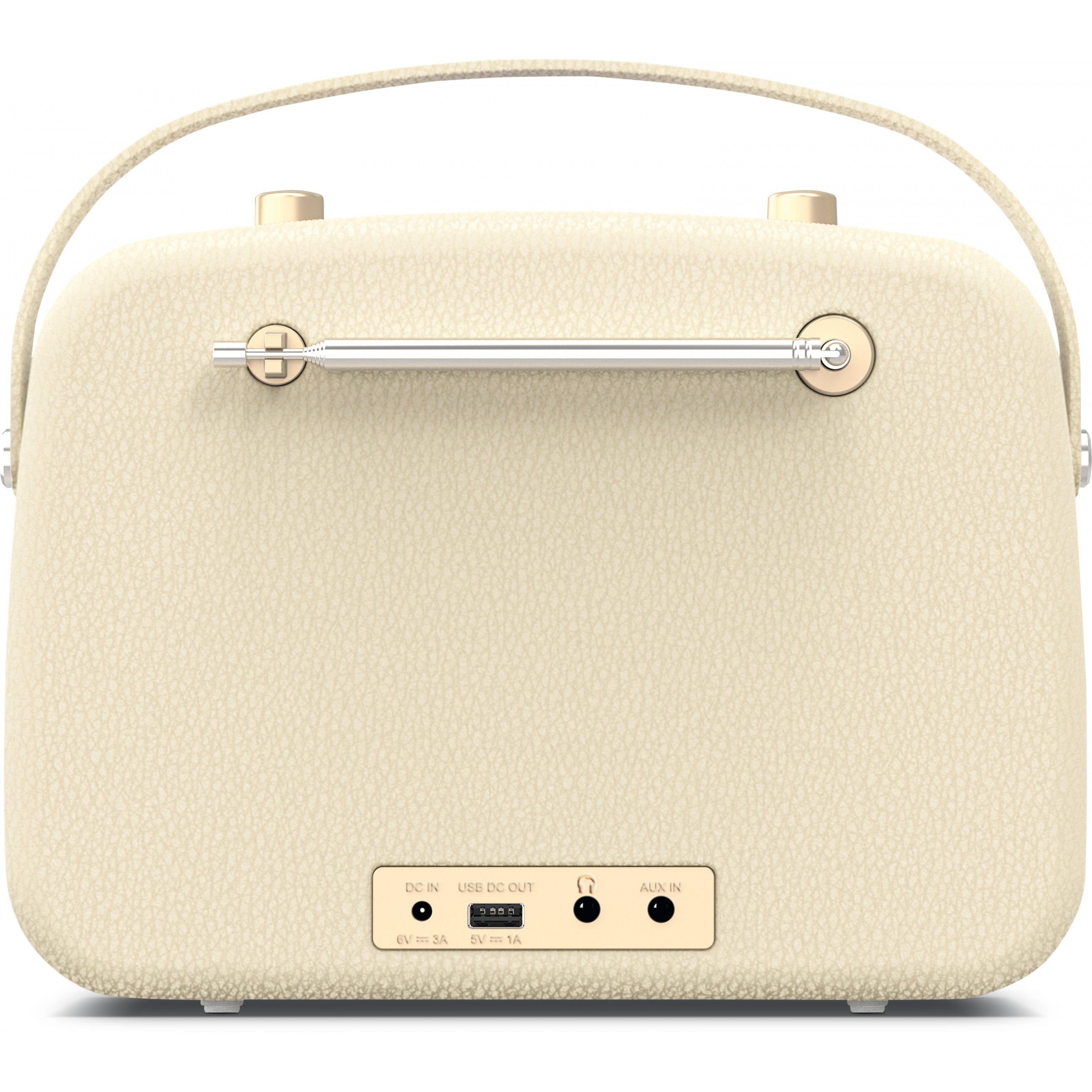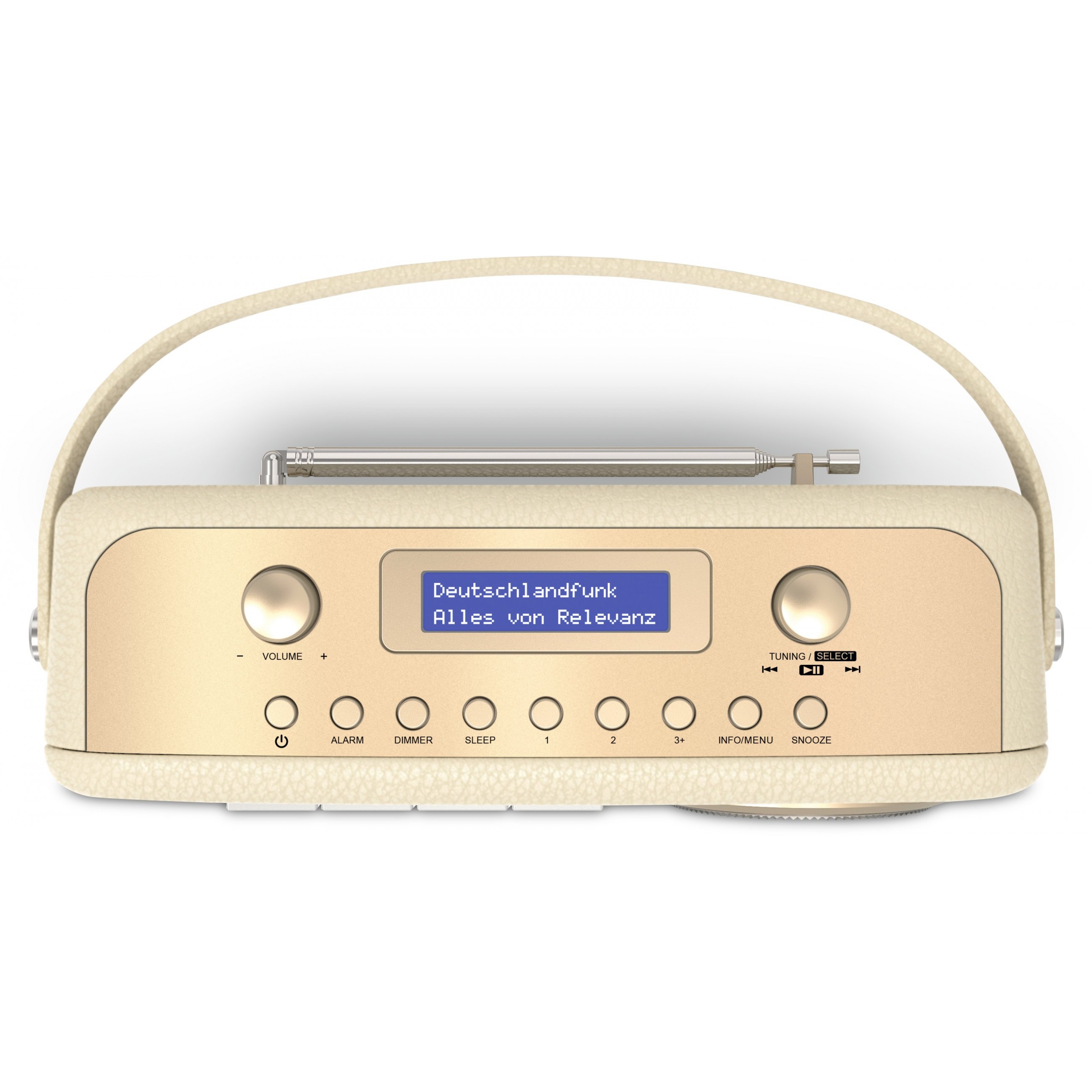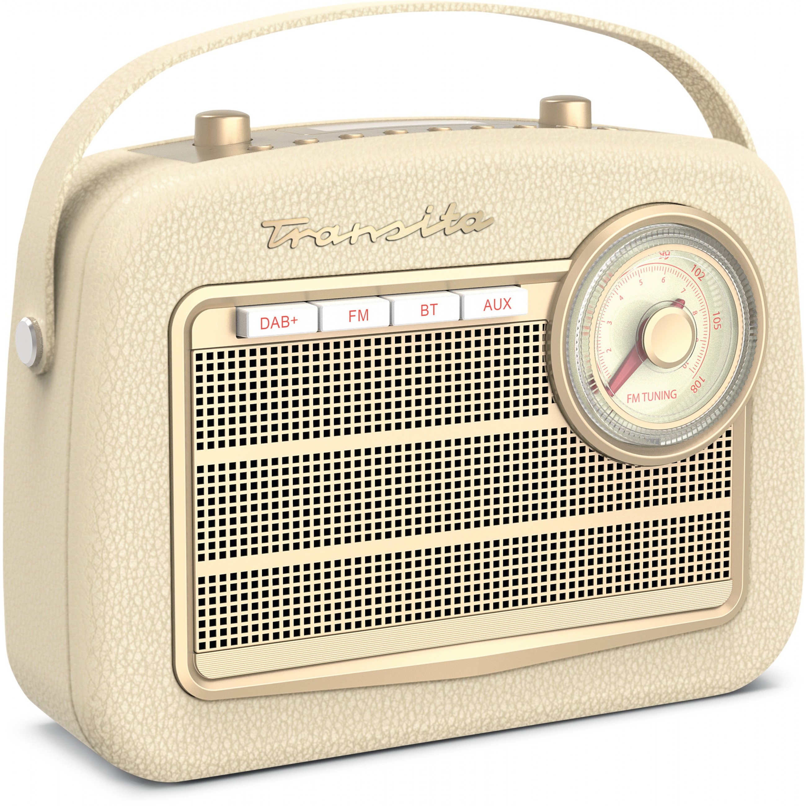 Die perfekte Kombination aus alt und neu! Optisch sagt das Digitalradio TRANSITA 130: „Ich bin Retro!“ Und das kann man so absolut unterschreiben. Denn nicht nur der Kunstlederüberzug samt Trageriemen, die Farbgebung oder der große Lautsprechergrill erinnern an Radiodesigns aus einer anderen Zeit. Richtig nostalgisch wird das Transita 130 vor allem durch den auffälligen UKW-Frequenzwahl-Regler auf der Gerätefront. Hier stellen Sie die UKW-Frequenz ganz klassisch per Hand auf einem UKW-Frequenzkompass ein, wobei gefundene Radiosender wiederum digital übernommen, gespeichert und auf dem schicken LCD angezeigt werden.