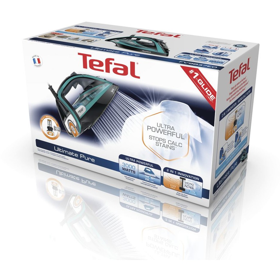 Das Ultimate Pure Dampfbügeleisen von Tefal ist ein erstklassiges Gerät für die Pflege von Textilien jeder Art, das vor Kalkflecken schützt und perfekte Ergebnisse garantiert. Unser patentiertes Micro-Calc-Filtersystem filtert 100 % des Dampfes und bietet ein hervorragendes Kalk-Management-System sowie eine beeindruckende Leistung, die all Ihre Bügelanforderungen erfüllt: 3200 W Leistung, variable Dampfabgabe von 60 g/Min. und 250 g/Min. Dampfstoß, um selbst die hartnäckigsten Falten zu beseitigen.