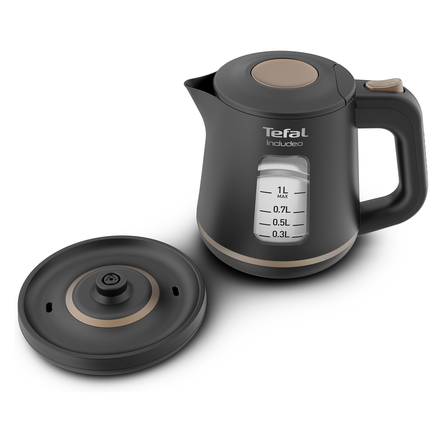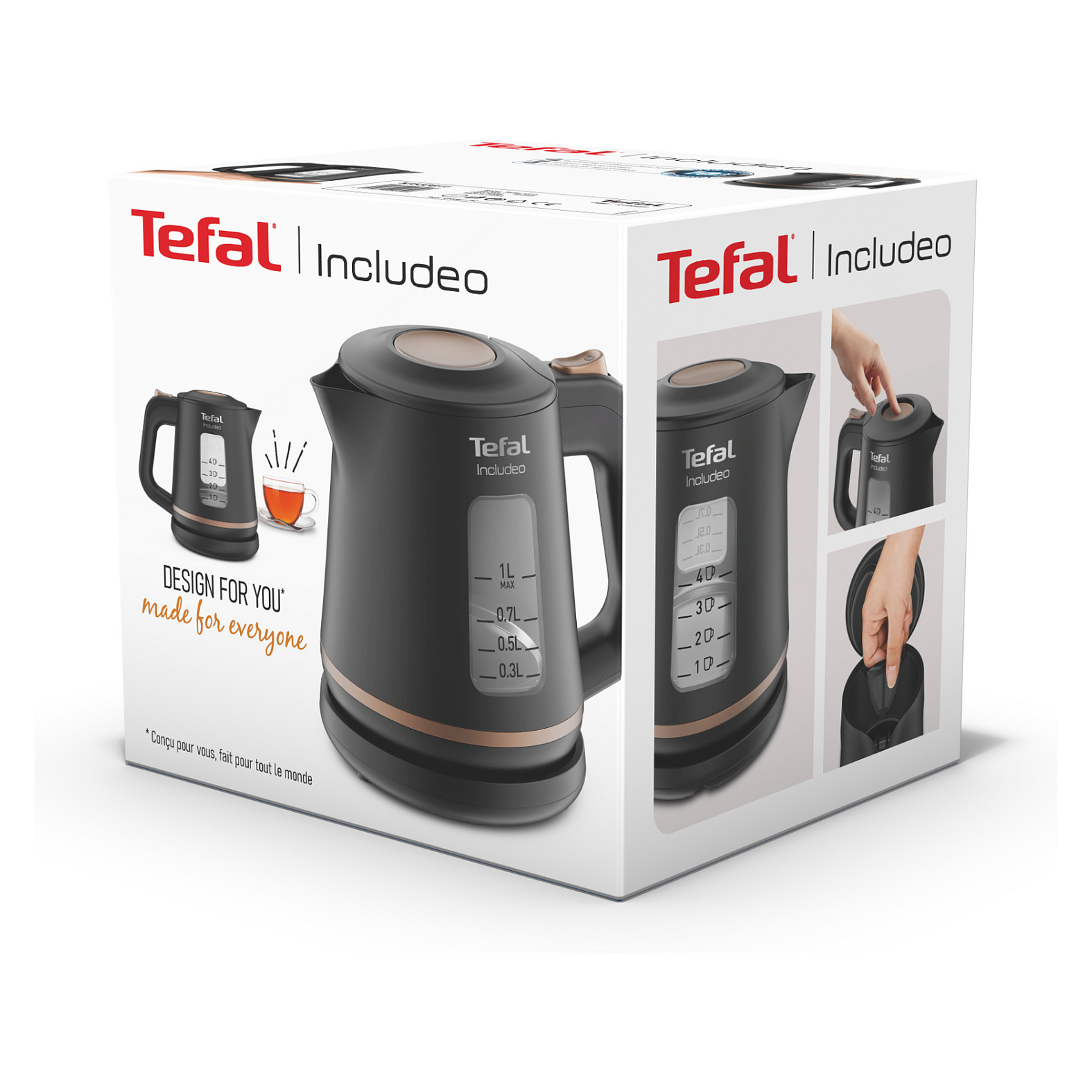 Der Tefal Includeo Wasserkocher eignet sich für jedermann! Vom großzügigen, einfach zu bedienenden Knopf zum Öffnen und Schließen auf dem Deckel, bis zum robusten Anti-Rutsch-Griff – Tefal hat an alles gedacht, um den täglichen Gebrauch möglichst einfach zu gestalten. Mit einem angenehmen Gewicht und einer Kapazität von 1 Liter verfügt dieser elektrische Wasserkocher über eine große Wasserstandsanzeige auf beiden Seiten mit klaren Maßangaben zum einfachen Ablesen. Ferner verfügt dieser Wasserkocher über einen 360°-Drehsockel mit einem kontrastfarbenen Ring für einfaches Abstellen aus jeder Position. Abgerundet wird das Ganze durch einen leicht zu bedienenden Ein-/Ausschalter mit Kontrollleuchte und eine präzise Ausgießhilfe für einfaches Servieren. Tefal Includeo: für Sie entworfen – für jedermann geeignet!